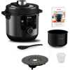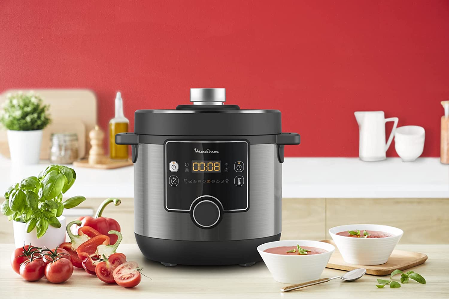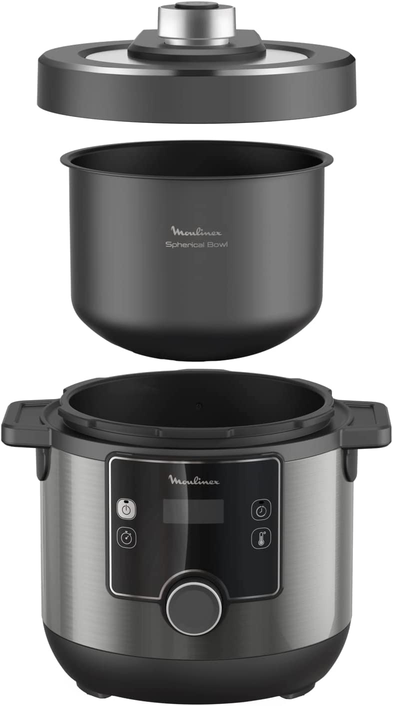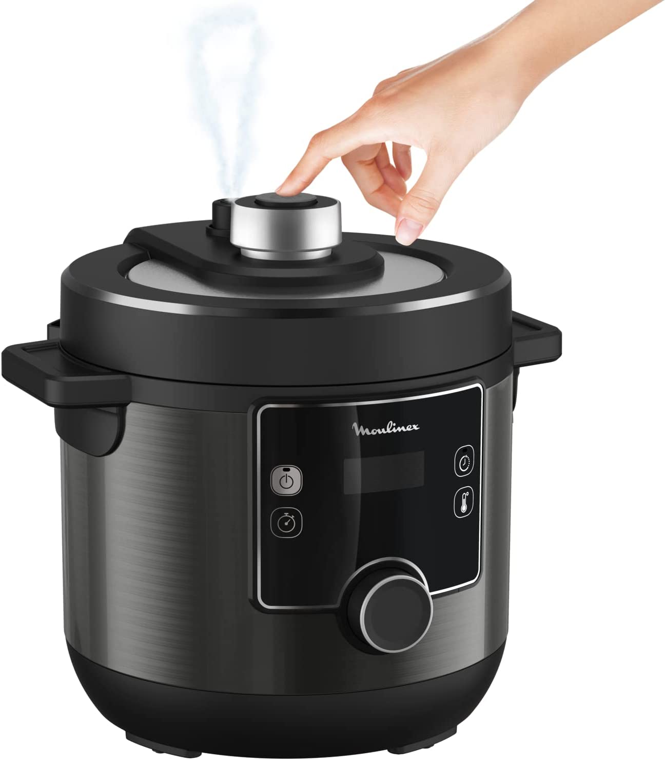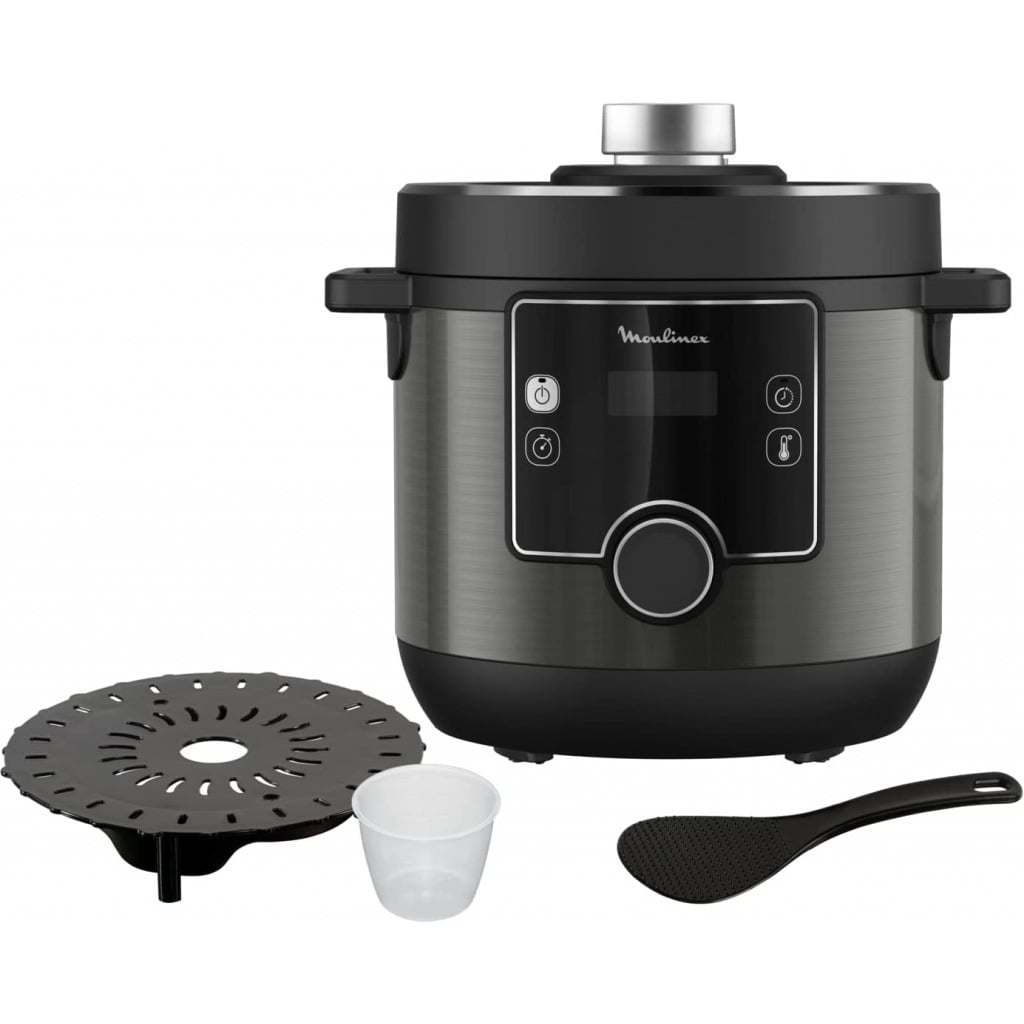 Key Features: Tefal Turbo Cuisine Electrical Pressure Cooker/Rice Cooker, 7.6 Litre, 1200 Watts, Black, CE777865 Versatile fast multicooker with an XL 7.6 L capacity that serves up to 8 people Tefal’s exclusive Spherical Bowl for perfect home-cooked meals day after day 10 automatic programs for all your needs from starter to dessert, for hearty stews, express cooking, and more Monitor-free cooking and express pressure cooking, for a more convenient cooking experience with fast results Quality backed by our 15-year repairability guarantee—to help protect the environment and cut down on waste Easy single-knob control and non-stick coating for home cooking that couldn’t be easier Endless inspiration with inventive and delicious Tefal recipes online and in the included recipe book One-click steam release button releases pressure with total safety and convenience