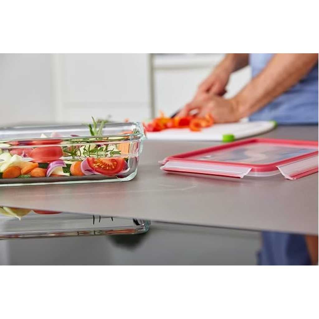 TEFAL 700ml Rectangular Master Seal Fresh Glass, Food Container, Food Storage, Stackable, Compatible with Oven and Freezer, N1040610 MASTERSEAL GLASS STORAGE CONTAINERS: the perfect solution for every situation Improved design: a reinforced edge and a special stacking edge for stable and practical stacking of containers of the same size and an even more robust glass container Microwave and oven safe: up to 460°C* 100% airtight – for total peace of mind during storage or transport 100% frost-resistant: up to -40°C for perfect freezing 100% dishwasher-safe: for easy cleaning 100% hygienic: thanks to a tight, secure seal German lid technology: simply clip and close Key Features: TEFAL 700ml Rectangular Master Seal Fresh Glass, Food Container, Food Storage, Stackable, Compatible with Oven and Freezer, N1040610 Brand Name Tefal Color Transparent/Green Material Glass Material Features Glass Capacity 7 Liters Special Features Stackable, Microwave Safe, Air T Closure Type Clip-On Is the item dishwasher safe? Yes Item Package Quantity 1 Product Care Instructions Dishwasher