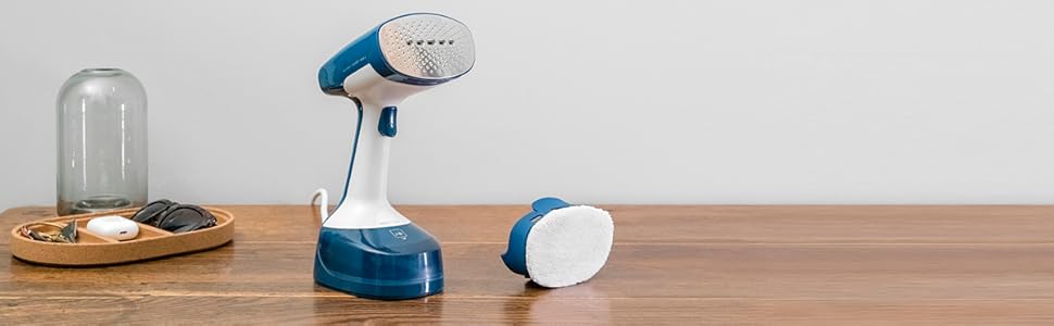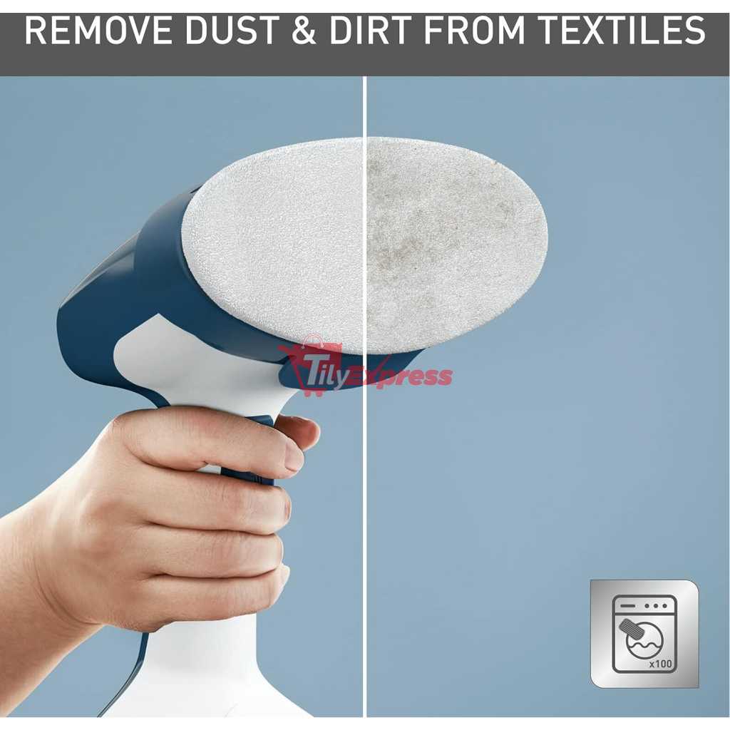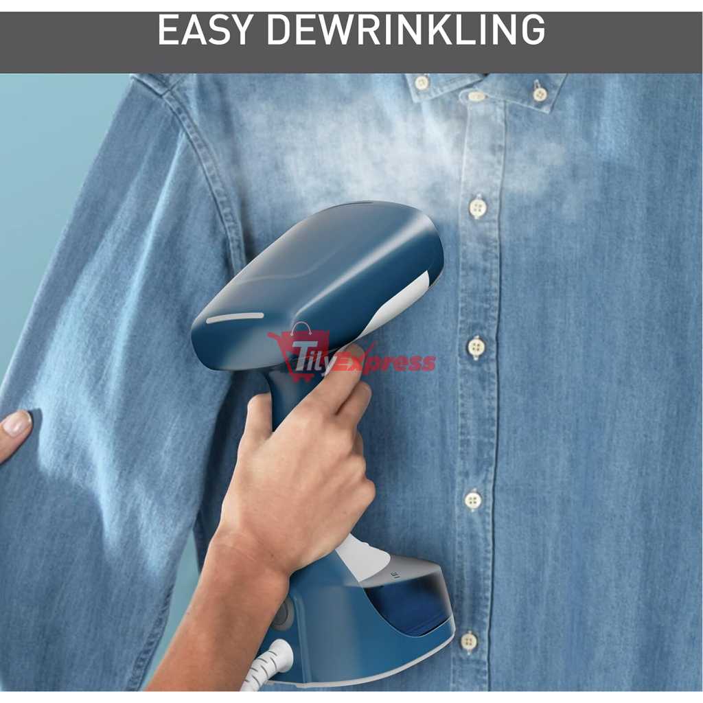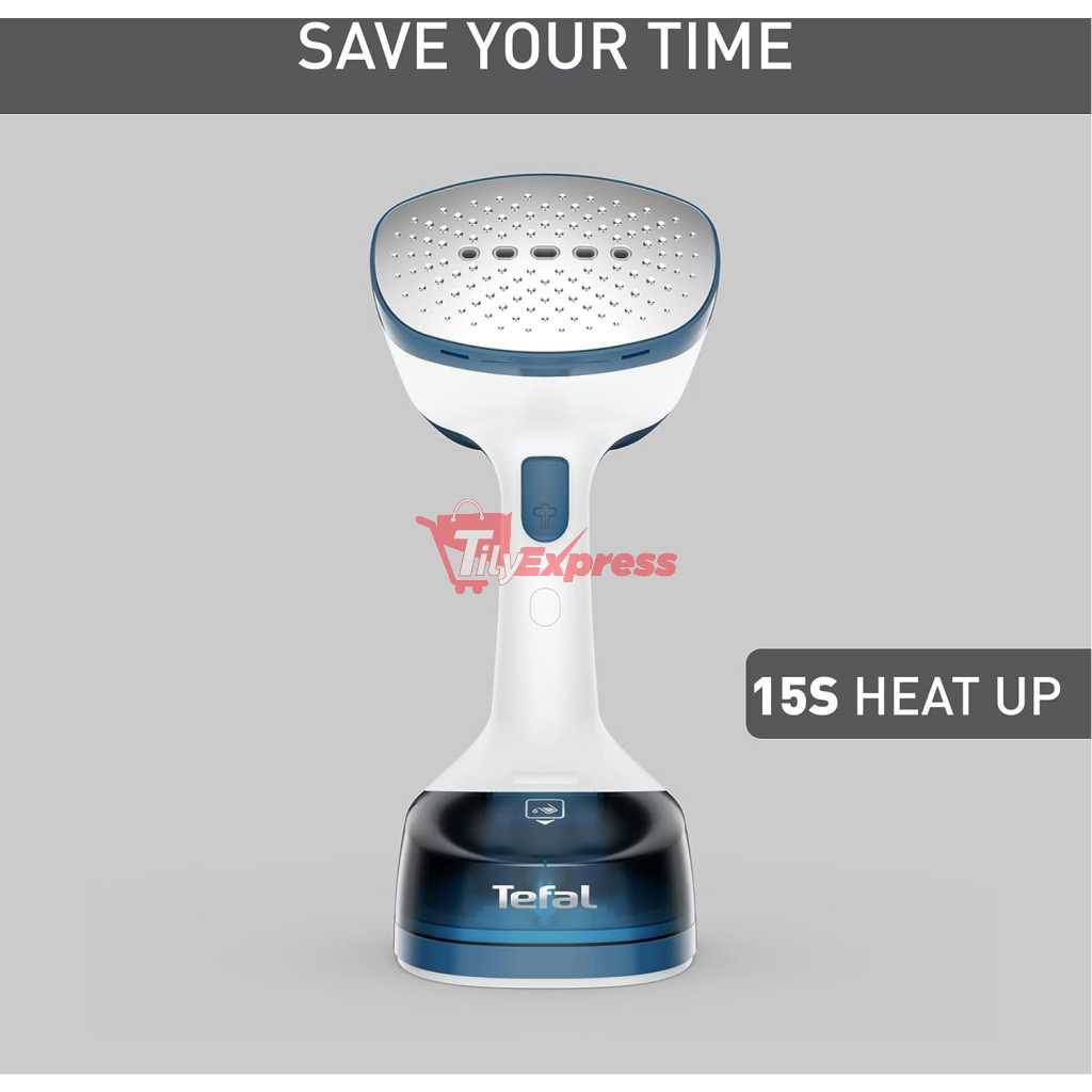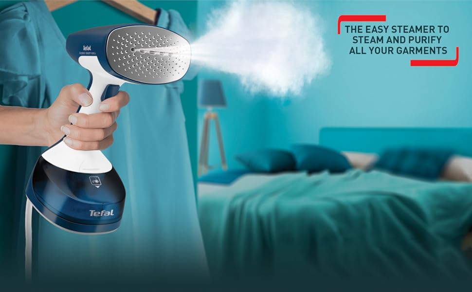 Tefal Access Steam Easy Handheld Garment Steamer, 1400 W, Steam Output Up to 25 g/Min., Rapid 15-Second Heat-Up, Sanitizing, Light, Door Hook, DT7130G0. For quick dewrinkling and purifying, Access Steam Easy is the key to looking your best day after day. This convenient and easy-to-use handheld steamer comes equipped with 1400 W of power and a steam output up to 25 g/minute for easy and smooth dewrinkling and garment purifying*. With a heat-up time of only 15 seconds, it’s ready when you are—purifying and removing dust for perfect hygiene, lasting freshness and a burst of confidence every time. *external tests conducted in independent laboratories, applying the device on cotton fabric and slowly steaming back and forth 3 times. Key Features: Tefal Access Steam Easy Handheld Garment Steamer, 1400 W, Steam Output Up to 25 g/Min., Rapid 15-Second Heat-Up, Sanitizing, Light, Door Hook, DT7130G0. EASY AND QUICK WRINKLE REMOVAL: A powerful and highly efficient handheld steamer with 1400 W power and steam output up to 25 g/minute SAVES TIME: Ready in no time with a 15-second heat-up time, to keep you looking your best day after day REFRESHED NATURALLY: The natural power of steam refreshes your clothes and reduces odors for a fresh feeling FRESHENS UP TEXTILES: Use your garment steamer and micro-fiber dust brush to freshen up and remove dust from clothing 15-YEAR REPARABILITY: Quality backed by a 15-year repairability commitment, with 100% of our products tested prior to shipment SANITIZES: Steam power refreshes, sanitizes and removes odors as it steams—eliminating up to 99.99% of viruses and bacteria for fresh garments and perfect hygiene (external tests conducted in independent laboratories, applying the device on cotton fabric and slowly steaming back and forth 3 times) COMFORTABLE AND EASY TO USE: The included door hook offers easy set up and convenient steaming anywhere you need it SAFE FOR ALL FABRICS: Safe for use on all kinds of garments, even the most delicate, such as silk