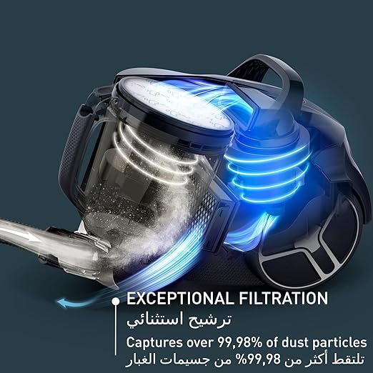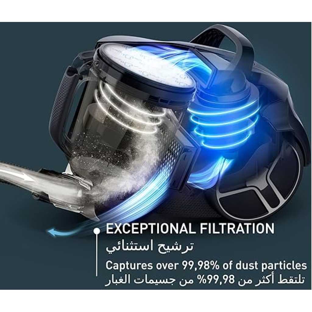 Tefal Bagless Vacuum Cleaner, Compact Power, XXL Animal Kit Canister, Vacuum Cleaner, 900 W Low Consumption Motor, Advanced 3-Level Cyclonic Filtration, 2 Years Warranty, TW4B71HA Brand Tefal Special features Bagless Filter type Cartridge Surface recommendation Carpet, Hard Floor, Upholstery Power source dual_powered XXL CLEANING PERFORMANCE: A bagless vacuum cleaner that delivers impressive suction with advanced cyclonic technology and a 900 W max low-consumption* motor for perfect cleaning results (*according to (EU) N°666/2013) XXL CAPACITY: An impressive 2.5 L capacity to cover all sizes of living spaces, for a canister vacuum cleaner that offers greater autonomy and convenience COMPACT DESIGN: A streamlined design and a highly compact bagless format for maximum convenience, smoother cleaning, and easier storage—ensuring an effortless fit in most closets and cupboards
