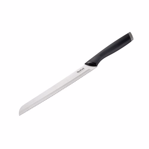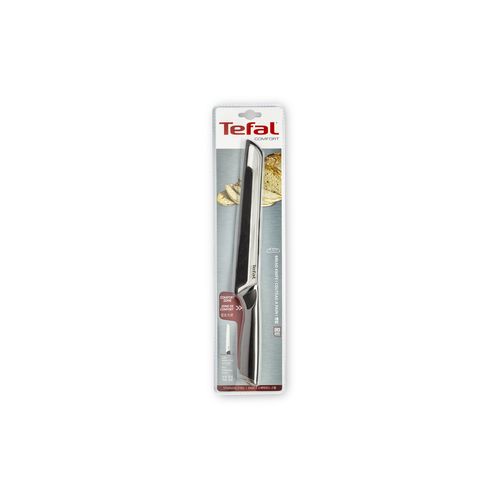 TEFAL COMFORT BREAD KNIVES 20cms -K2213414- BLACK Stainless steel bread knife 20 cm Perfectly slice all types of bread. Featuring a strong blade with resistant teeth, for long-lasting performanc Comfort Knives’, the perfect knives to start with maximum comfortable usage! A complete assortment with both Stainless Steel and Ceramic offer. Ergonomic handle with soft touch for an optimal comfort and control of usage. High quality stainless steel Essential Comfort Knives: the perfect starter knife set! With Essential Comfort Knives, enjoy a complete assortment of knives and accessories in both stainless steel and ceramic, featuring soft-touch ergonomic handles for optimal comfort and control. High-quality stainless steel blades provide excellent cutting performance and resistance and ceramic blades offer outstanding precision, while safe blade covers protect each blade shape, for guaranteed security and easy storage. 14 products for high cutting performance: – Paring knife 9 cm (available in ceramic and stainless steel) – Utility knife 12 cm (available in ceramic and stainless steel) – Chef knife 15 cm (available in ceramic and stainless steel) – Chef knife 20 cm – Bread knife 20 cm – Slicing knife 20 cm – Santoku 12 cm (available in ceramic and stainless steel)– 4 steak knives – Cheese knife – Kitchen Shears Essentials COMFORT ZONE LONG LASTING PERFORMANCE Features Active Part Material: Stainless Steel Dimension: 20cms Handle Color: Black + Grey-Hippo Type: Bread Comfort Knives’, the perfect knives to start with maximum comfortable usage! A complete assortment with both Stainless Steel and Ceramic offer. Ergonomic handle with soft touch for an optimal comfort and control of usage. High quality stainless steel FAQ WHERE CAN I DISPOSE OF MY APPLIANCE AT THE END OF ITS LIFE SPAN? Your appliance contains valuable materials which can be recovered or recycled. Leave it at a local civic waste collection point. WHERE CAN I BUY ACCESSORIES, CONSUMABLES OR SPARE PARTS FOR MY APPLIANCE? Please go to the “ Accessories ” section of the website to easily find whatever you need for your product. WHAT ARE THE GUARANTEE CONDITIONS OF MY APPLIANCE? Find more detailed information in the Guarantee section of this website. Key Features: 20cms Bread Knife Stainless Steel Long lasting Performance Cuts with power and precision Ergonomic handle with soft touch material