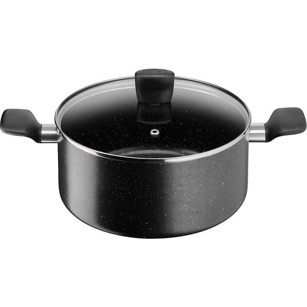 Tefal Dark Stone, 9 Pcs Non-stick Cookware Set, Safe Coating, Heat indicator, Ergonomic Handles, Glass Lid, B491S985 WHAT’S IN THE BOX: stewpots 20/24 cm+lids, saucepan 16 cm, frypan 28 cm, spoon, ladle. MINERALIA NON-STICK COATING: Discover durable non-stick performance and perfect glide for easy low-fat cooking every day. SAFE NON-STICK COATING: Safe non-stick, no PFOA, no Lead, no Cadmium. Stricter controls than those required by current food contact regulations. No PFOA in compliance with applicable regulations. No Lead, No Cadmium (no Pb, no Cd) means no intentional addition of Pb and Cd in the coatings and not detected by tests conducted by external laboratories. HEAT INDICATOR: The innovative Thermo-Spot changes color when it’s time to start cooking, for perfect searing every time. ESSENTIAL FORMAT: Frypan for easy-to-prepare recipes that are sure to please, such as omelets, burger patties, and grilled chicken. DEPENDABLE FORMAT: The perfect pots for crowd-pleasers ranging from spaghetti Bolognese to corn on the cob—or even homemade popcorn. GLASS LID: The elegant glass lid speeds up your cooking time and ensures easy monitoring. COMFORT GRIP HANDLE: An ergonomic design for added safety and convenience. STOVETOP COMPATIBILITY: Compatible with all stovetops—gas, electric, and ceramic—excluding induction