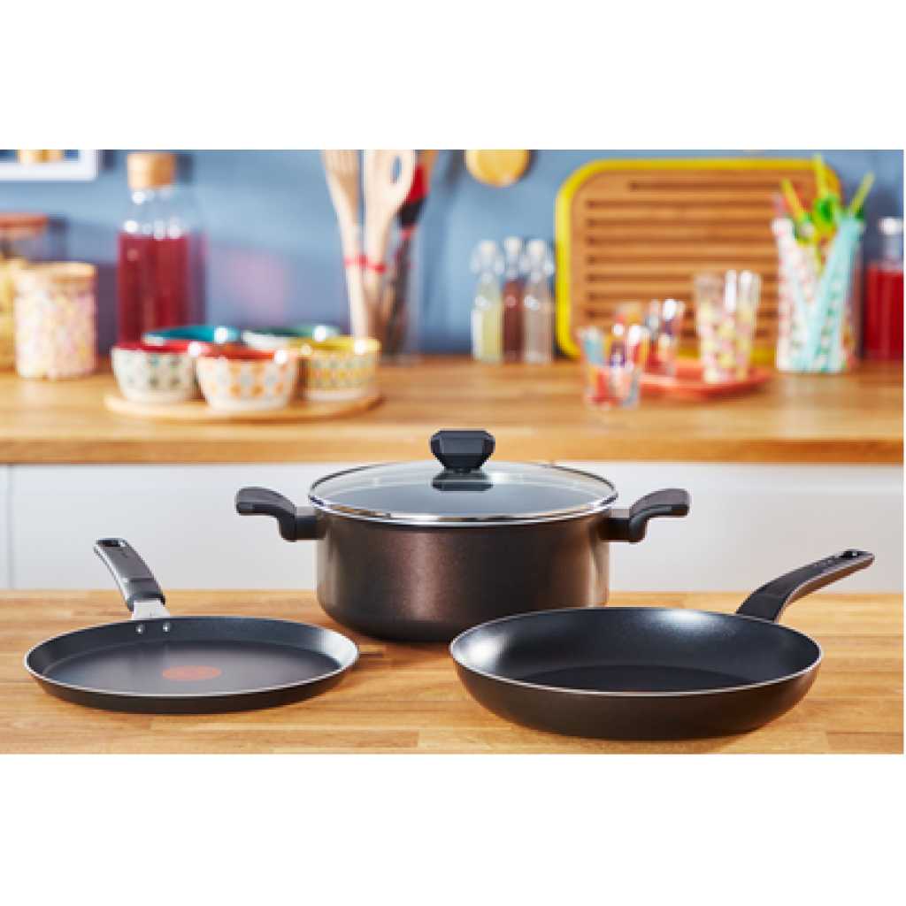 Tefal Easy Cook & Clean 2piece Frypan 24CM & 28CM, Titanium Non-Stick Cookware, Thermo-Signal 100% Safe, B5549053 Main features Key Features: Tefal Easy Cook & Clean 2piece Frypan 24CM & 28CM, Titanium Non-Stick Cookware, Thermo-Signal 100% Safe, B5549053 material aluminum Stove type Gas – Electric – Ceramic – Halogen Oven safe Yes Dishwasher safe Yes Internal sealing Non-stick coating Non-stick coating Titanium Exterior coating Non-stick coating Pouring rim Only pots Handle Permanently mounted Cooking surface Non-stick coated Cooking style Easy cooking Durability of the coating (pans) X1 Special features Cooking with little to no fat Removable handle No