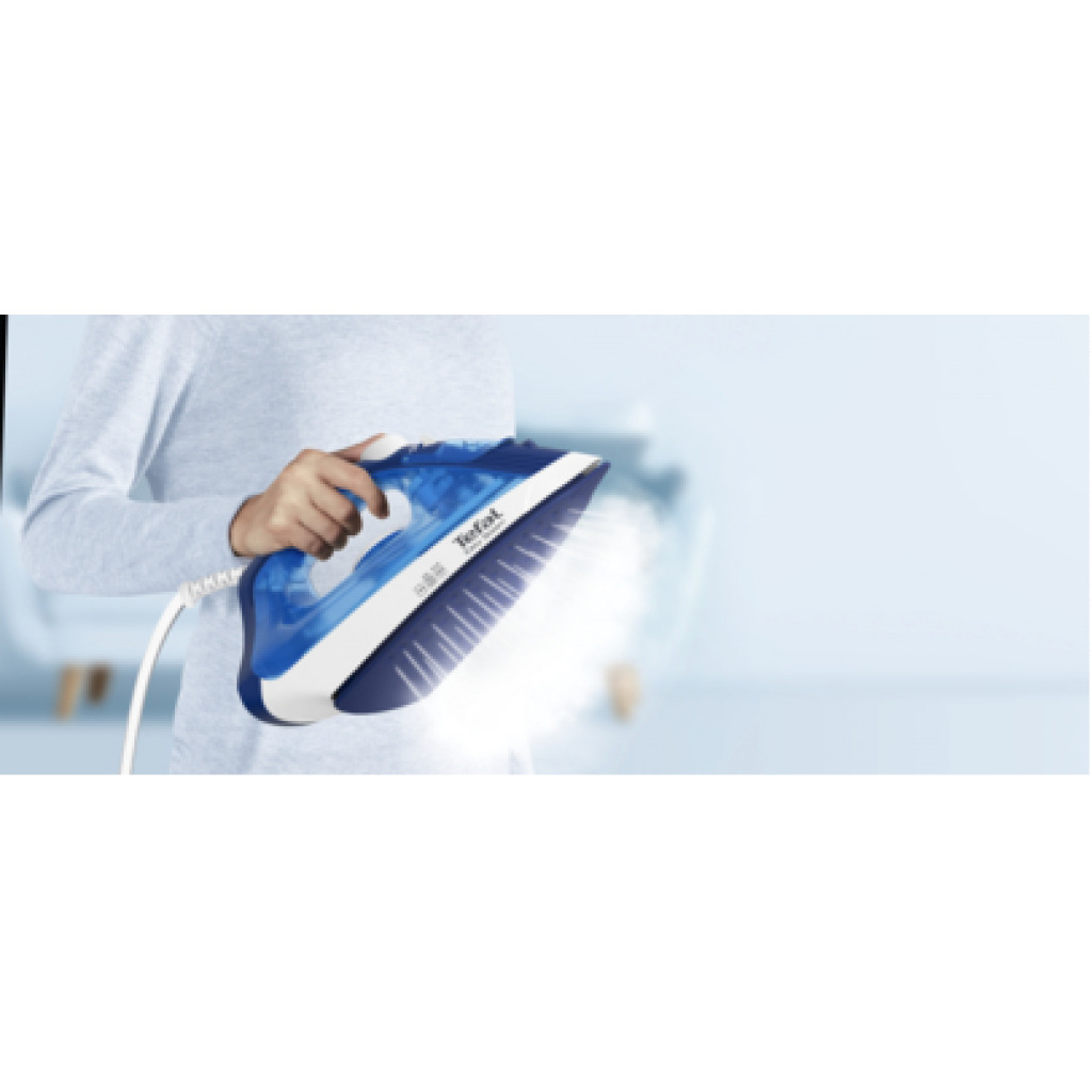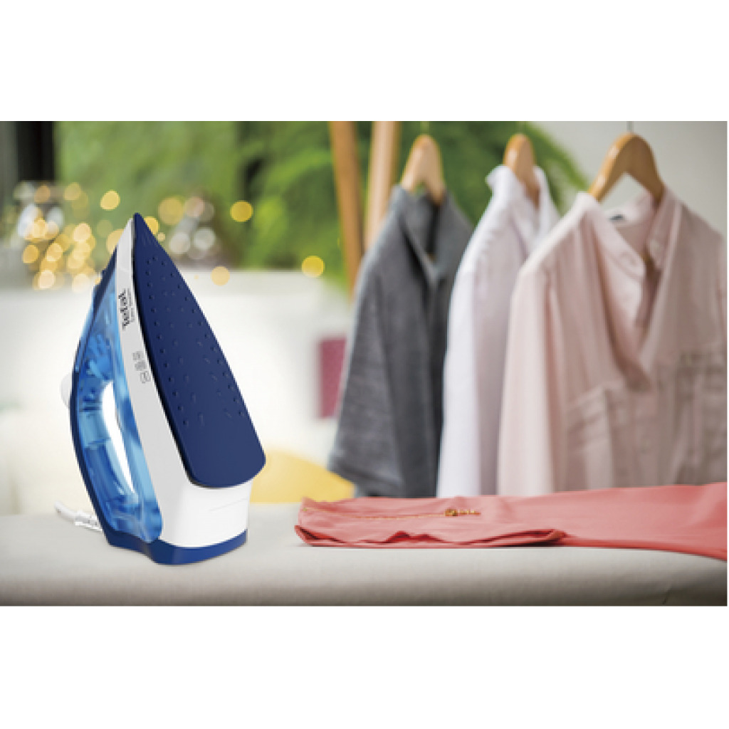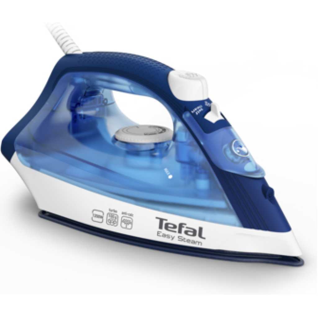 The TEFAL Easy Steam ,Steam Iron Bringing together dependable glide with even greater steam power and enhanced features, The TEFAL Steam Essential Steam Iron offers easy ironing day after day. The XL Duraglide soleplate provides a large surface for high-efficiency ironing sessions and high steam power for great results. Give your garment care experience an upgrade with 1200W of power for a quick heat-up time, a continuous steam output of up to 20 g/minute for dependable performance, and five simple temperature settings to meet all your ironing needs with total ease. Discover enhanced ergonomics with a comfortable handle and spray button, no-hassle maintenance through the anti-calc system, effortless refills, and even vertical steaming—all with high-performance glide that makes ironing easier every day. Key Features: TEFAL Easy Steam Iron FV1941M0 1200W Spray + Vertical – Blue The TEFAL Easy Steam, Steam Iron is equipped with an XL Duraglide soleplate for an easier ironing experience with dependable glide and a large surface area for greater efficiency. The precision tip offers effortless access to hard-to-reach areas, while powerful steam and easy-to-use controls round off the perfect ironing package.
