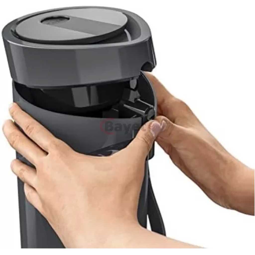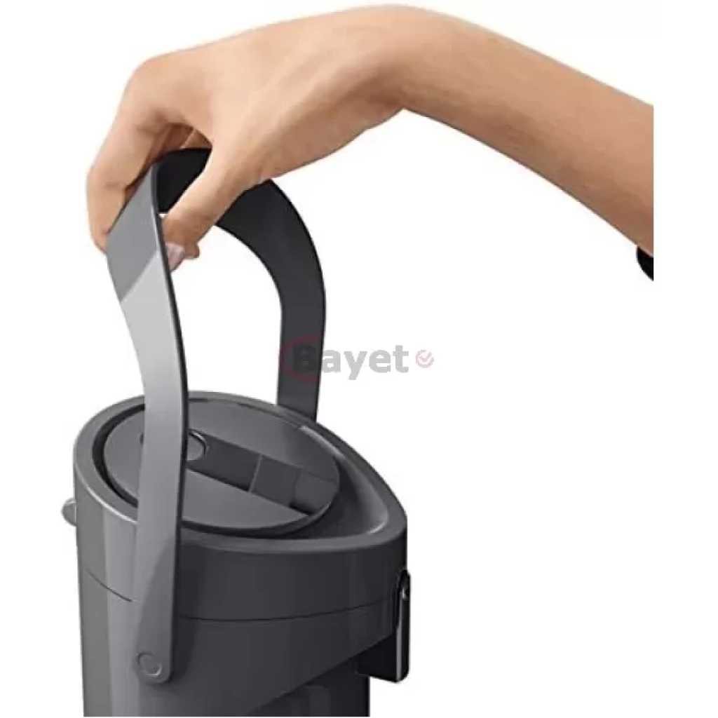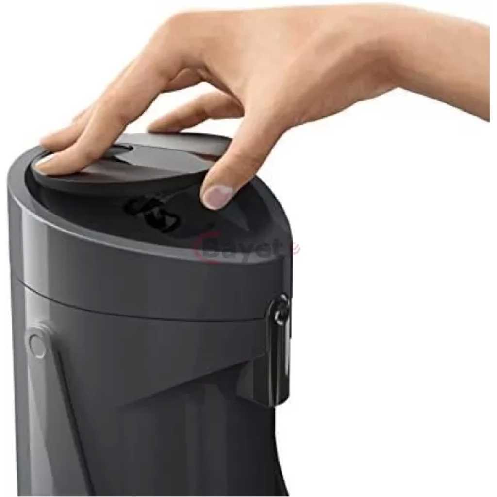 TEFAL K3140114 Ponza Pump 1.9L Vacuum Flask,1L Simple Pump Function With Generous Pump Volume Warm Up To 12 Hours Cold Up To 24 Hours. Discover a stylish and ultra-modern pump thermos with an elegant style that fits in perfect any environment and never fails to impress. Experience easy filling, serving and cleaning with features such as detachable drip tray and a carry handle designed for maximum convenience. A removable pump head makes cleaning the pump thermos very easy, and the filling process couldn’t be easier. With the pump thermos you can enjoy delicious hot drinks with perfect temperature for up to 12 hours, or cold drinks for up to twenty four hours. The 1.9L capacity is ideal for all groups, whether at home, in the office or for serving for important events. Key Features: TEFAL K3140114 Ponza Pump 1.9L Vacuum Flask,1L Simple Pump Function With Generous Pump Volume Warm Up To 12 Hours Cold Up To 24 Hours. Discover a stylish and ultra-modern pump thermos with an elegant style that fits in perfect any environment and never fails to impress. Experience easy filling, serving and cleaning with features such as detachable drip tray and a carry handle designed for maximum convenience. A removable pump head makes cleaning the pump thermos very easy, and the filling process couldn’t be easier. With the pump thermos you can enjoy delicious hot drinks with perfect temperature for up to 12 hours, or cold drinks for up to twenty four hours. The 1.9L capacity is ideal for all groups, whether at home, in the office or for serving for important events.