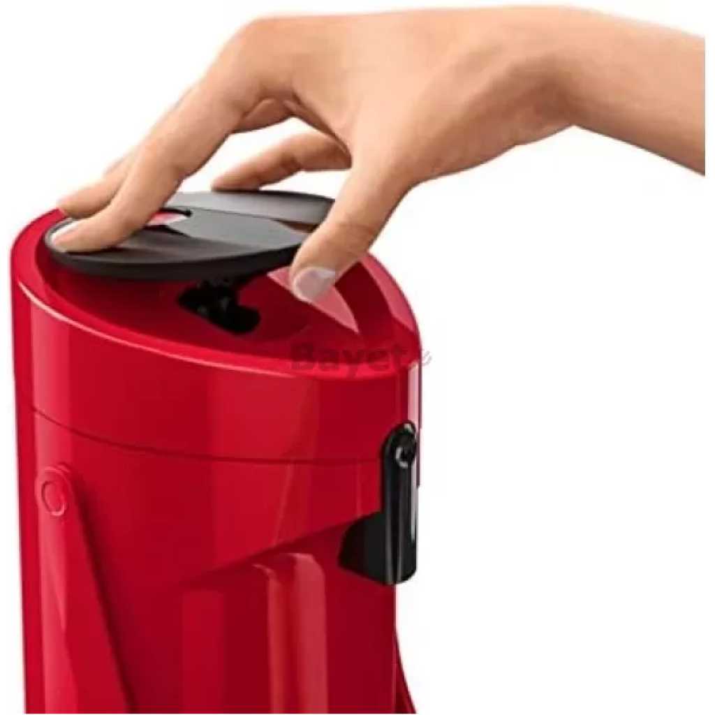 TEFAL K3140314 Ponza Pump 1.9L Vacuum Flask, Simple Pump Function With Generous Pump Volume Warm Up To 12 Hours Cold Up To 24 Hours. Discover a stylish and ultra-modern pump thermos with an elegant style that fits in perfect any environment and never fails to impress. Experience easy filling, serving and cleaning with features such as detachable drip tray and a carry handle designed for maximum convenience. A removable pump head makes cleaning the pump thermos very easy, and the filling process couldn’t be easier. With the pump thermos you can enjoy delicious hot drinks with perfect temperature for up to 12 hours, or cold drinks for up to twenty four hours. The 1.9L capacity is ideal for all groups, whether at home, in the office or for serving for important events. Key Features: TEFAL K3140314 Ponza Pump 1.9L Vacuum Flask, Simple Pump Function With Generous Pump Volume Warm Up To 12 Hours Cold Up To 24 Hours. Discover a stylish and ultra-modern pump thermos with an elegant style that fits in perfect any environment and never fails to impress. Experience easy filling, serving and cleaning with features such as detachable drip tray and a carry handle designed for maximum convenience. A removable pump head makes cleaning the pump thermos very easy, and the filling process couldn’t be easier. With the pump thermos you can enjoy delicious hot drinks with perfect temperature for up to 12 hours, or cold drinks for up to twenty four hours. The 1.9L capacity is ideal for all groups, whether at home, in the office or for serving for important events.