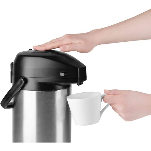 Key Features: Tefal K3150114 President Thermo Flask Pump Thermos Stainless Steel 3L – Silver Never run out of coffee or hot drinks, with a capacity of 3 l that is perfect for meeting large groups at home or during work events. A removable pump head makes cleaning very easy to clean the pump thermos, and the filling process could not be easier. With the pump thermos you can enjoy delicious hot drinks with perfect temperature for up to twelve hours, or cold drinks for up to twenty-four hours. With a classic finish in stainless steel, the style fits perfectly in all environments, at both formal and casual events. The robust pump thermos with two layers of stainless steel is built to last and guarantees long-lasting function.