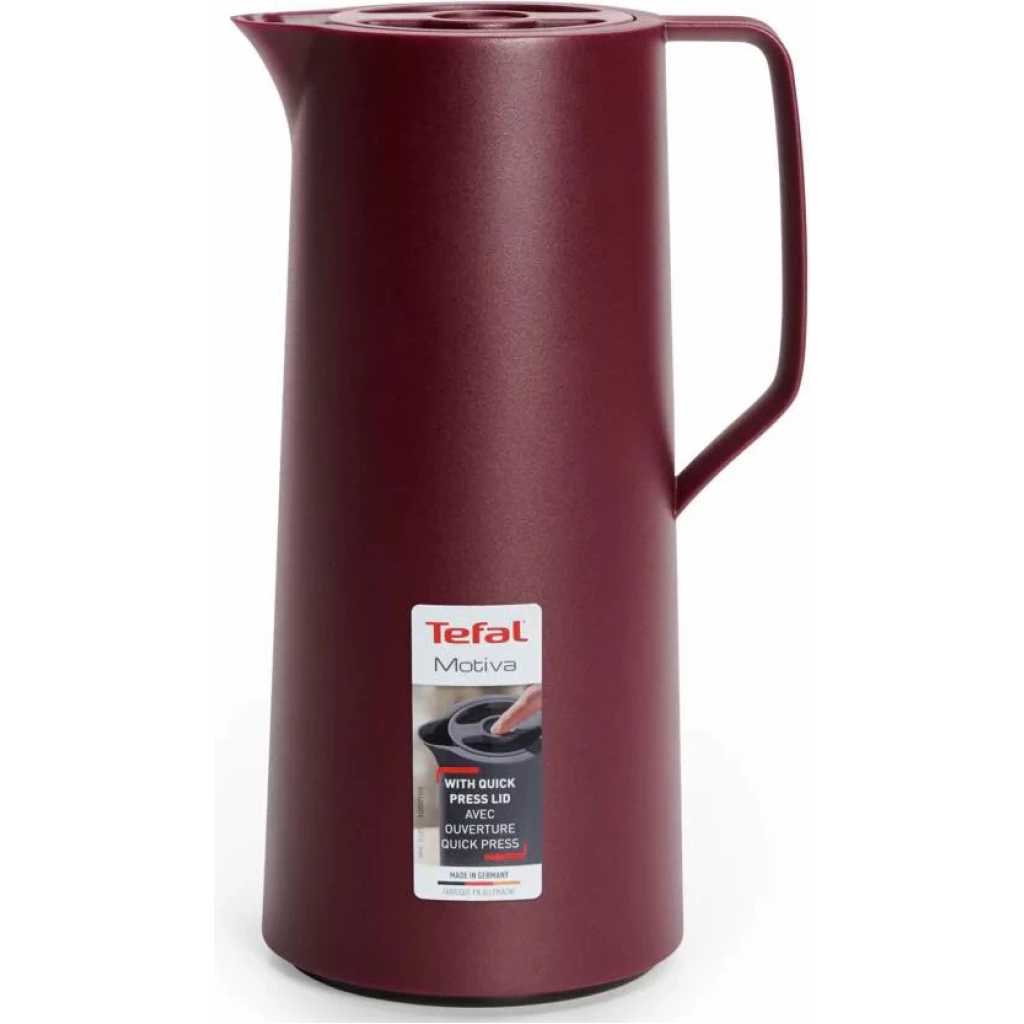 Tefal Motiva Jug, Vacuum Flask, 1- Liter, Glass Liner N4170210 – Red Wine. Simple and colorful design 100 % airtight Optimum thermal storage One hand fastening thanks to the Quick Press Heavy Duty 5-Layer Blown Glass Bulb. Leak Proof Air Tight Keeps hot for up to 12 hours keeps cold for up to 24 hours Glass Linear Vacuum Insulation Key Features: Tefal Motiva Jug, Vacuum Flask, 1- Liter, Glass Liner N4170210 – Red Wine. Simple and colorful design 100 % airtight Optimum thermal storage One hand fastening thanks to the Quick Press Heavy Duty 5-Layer Blown Glass Bulb. Leak Proof Air Tight Keeps hot for up to 12 hours keeps cold for up to 24 hours Glass Linear Vacuum Insulation