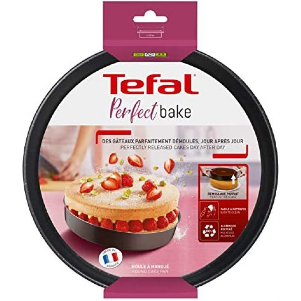Product Description With its durable, high-quality design, the Tefal Perfectbake round springform pan ensures exceptional baking and long-lasting performance. Thanks to its non-stick coating, you will obtain a perfect release of all your favorite cakes and desserts, and your mold will be very easy to clean. Box contents 1 mold Key Features: TEFAL PERFECTBAKE Mold A Manqué 24cm, 100% recycled aluminum J5549602 Baking Pan PERFECT DEMOLDING of your favorite charlottes and cakes, thanks to the exclusive non-stick coating of this mold HIGH RESISTANCE AND DURABILITY: this cake pan is made of 100% recycled aluminum, 2 times stronger than conventional aluminum PERFECT COOKING RESULTS: thanks to the even heat distribution ensured by recycled aluminum MADE OF 100% RECYCLED ALUMINUM: up to twice as strong as traditional aluminium* Ultra-ecological alloy, requiring up to 95%*** less energy for its manufacture; ***Recycled aluminum compared to mined new aluminum ECO-RESPONSIBLE: recyclable product with safe non-stick coating (no PFOA, no lead, no cadmium****); **** Stricter controls than those required by current regulations on food contact. Lead and cadmium free means no intentional addition of lead and cadmium to coatings. No migration at a concentration of 0.005 mg/kg EASY TO CLEAN: the non-stick coating is guaranteed PFOA-free, lead-free, cadmium-free MADE IN FRANCE by Tefal, World No. 1 ** in cookware; **Source: Euromonitor International Ltd, Home and Garden Edition 2019, In-Store Brand Value (RSP), 2018 data Made in France