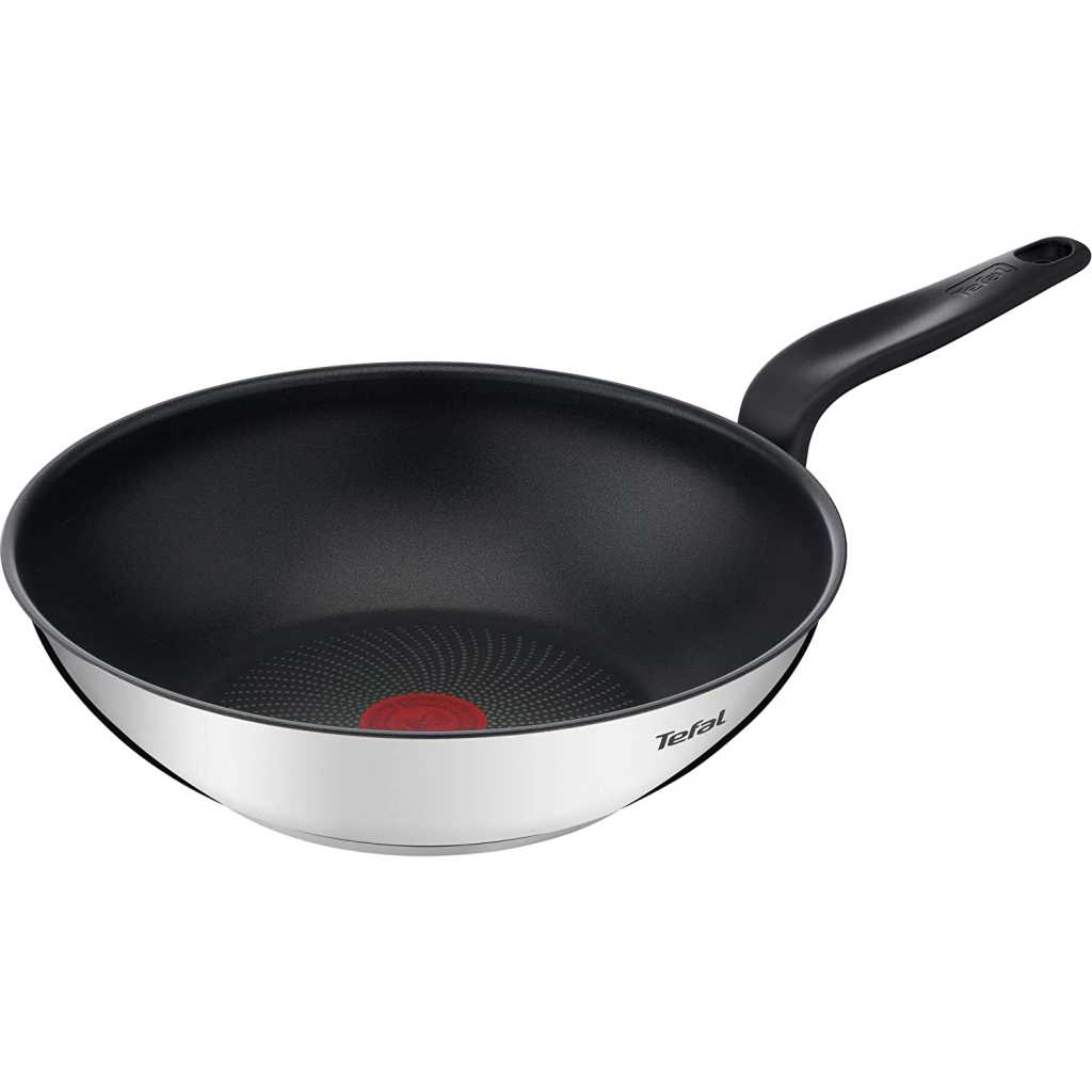 Key Features: Tefal Primary 28CM Non-stick Wok Pan E3091904. Stainless Steel With Non-stick Coating. Compatible with Smooth Surface Induction, Gas, and Electric Coil. Energy saving work pan thanks to the Thermo-Signal allows you not to waste energy. Thermo-Signal technology indicates the ideal cooking temperature to ensure perfect texture, colour, and taste. the induction base ensures even heat distribution for delicious cooking results. perfect stability and a Bakelite handle that stays cool even during cooking. long-lasting performance and reliability. Dishwasher safe. Model Number: E3091904