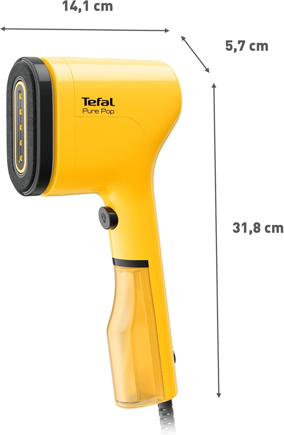 Tefal Pure Pop Slim Handheld Clothes Steamer, No Ironing Board Needed, Ready to Use in 15 Seconds, 70ml Detachable Water Tank, Travel Iron, Garment Steamer, Yellow, DT2026G0