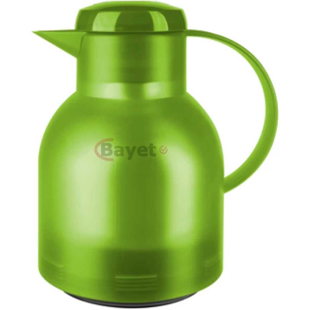 Key Features: Tefal Samba Jug, Vacuum Flask, 1- Liter, Glass Liner K3036312 – Translucent Green. Simple and colorful design 100 % airtight Optimum thermal storage One hand fastening thanks to the Quick Press Heavy Duty 5-Layer Blown Glass Bulb. Leak Proof Air Tight Keeps hot for up to 12 hours keeps cold for up to 24 hours Glass Linear Vacuum Insulation