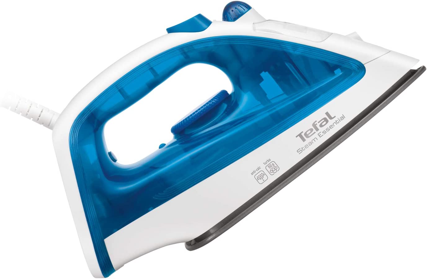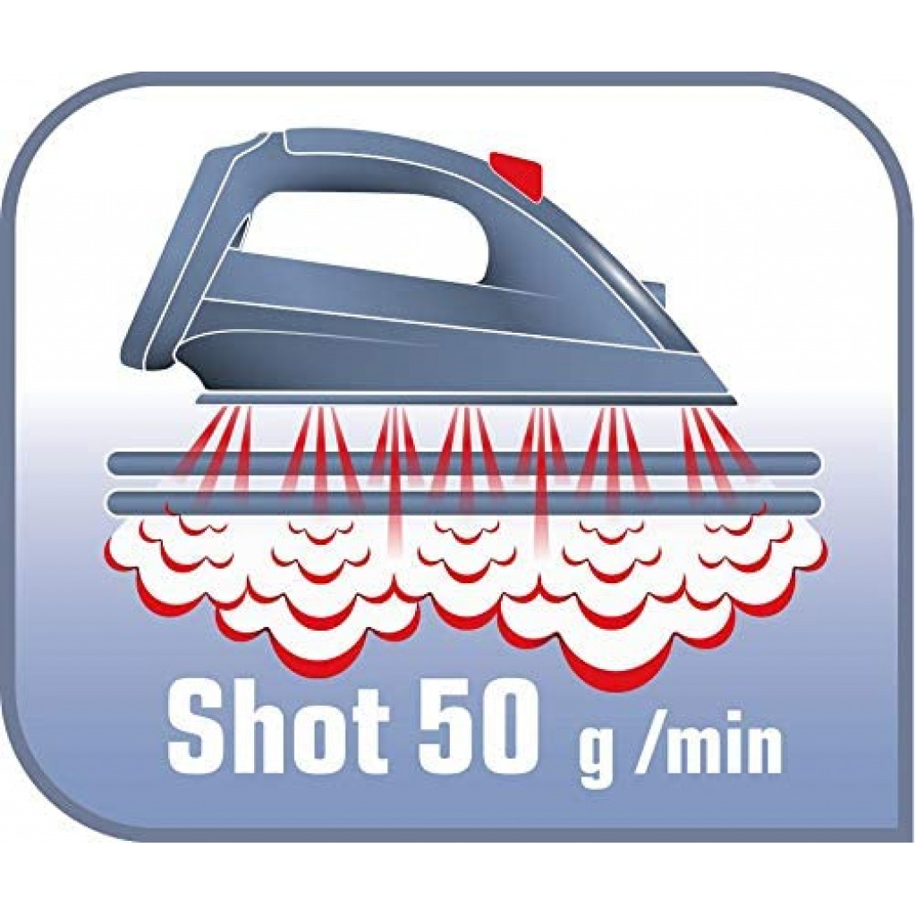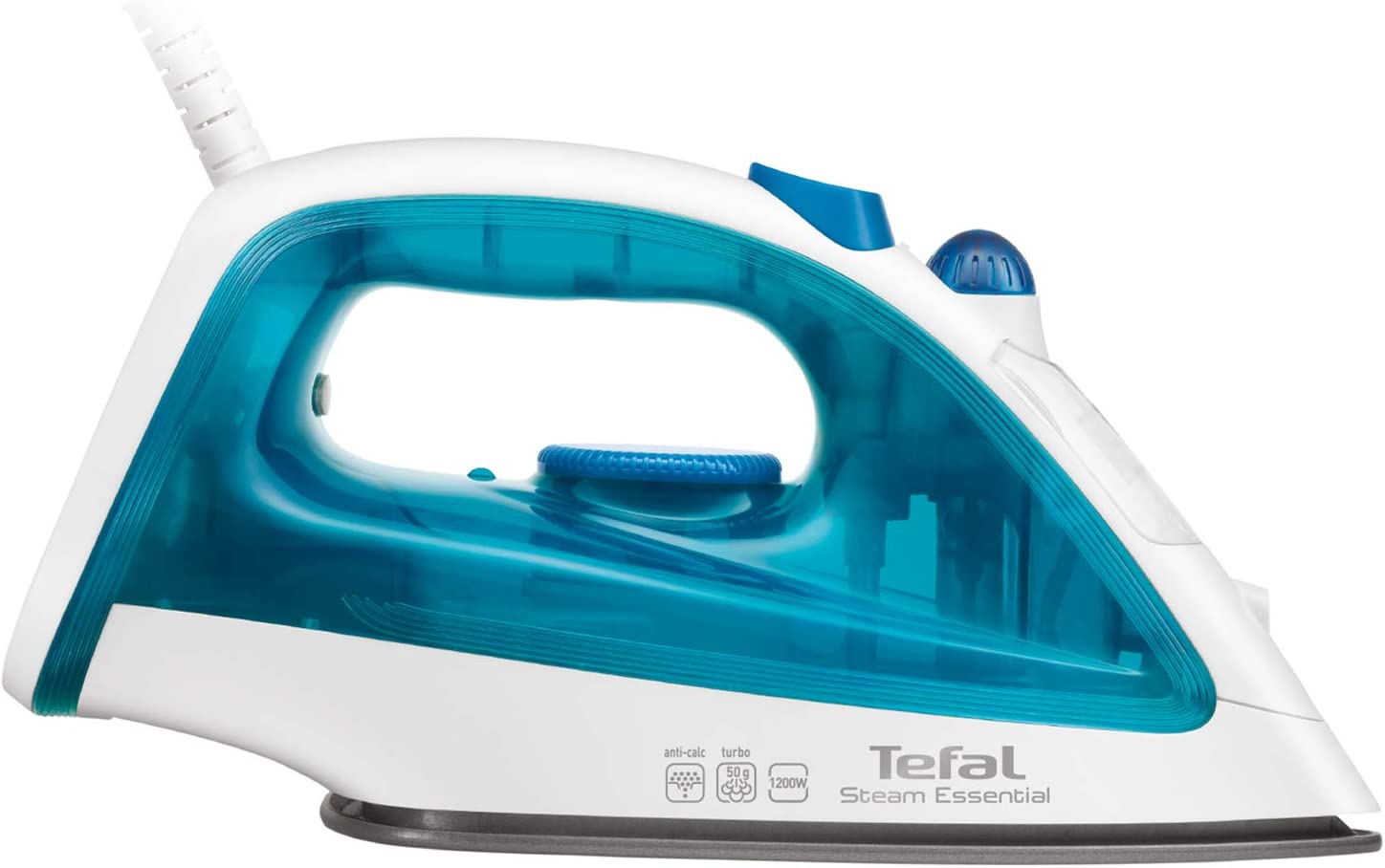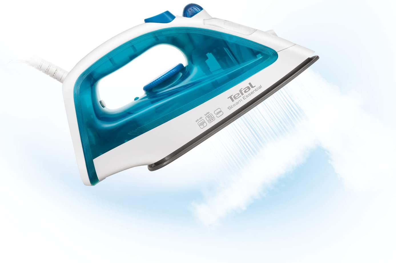TEFAL Steam Essential Steam Iron, 150 ml, 1200 Watts, Blue / White, Plastic, FV1026M0 Tefal steam iron fv1026m0 1200w non-stick soleplate 50 g steam boost 2in1 steam and dry iron Key Features: TEFAL Steam Essential Steam Iron, 150 ml, 1200 Watts, Blue / White, Plastic, FV1026M0 Continuous steam: to humidify and soften the fabric fibers with shot of steam: 50g/min, sends a powerful steam output to remove efficiently and easily tough creases Vertical steam, very convenient to iron delicate garments Easy and fast ironing and easy to handle, light weight design with 150ml watertank A non stick soleplate for effortless glide on the fabric Spray to remove instantly very tough creases
