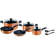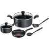 Key Features: Tefal 7 Pcs Super Cook Cookware Set – B459S784 Saucepan 18cm 1.9L Stewpot 24cm, 4.75Ltr, 24cm Frypan 2 Glass lids Hard Plastic Spoon & Long spatula Dishwasher Safe Compatible with all hobs except induction Heat Indicator: Thermo-Spot marking turns full red when the pan reaches the ideal temperature