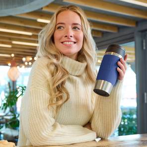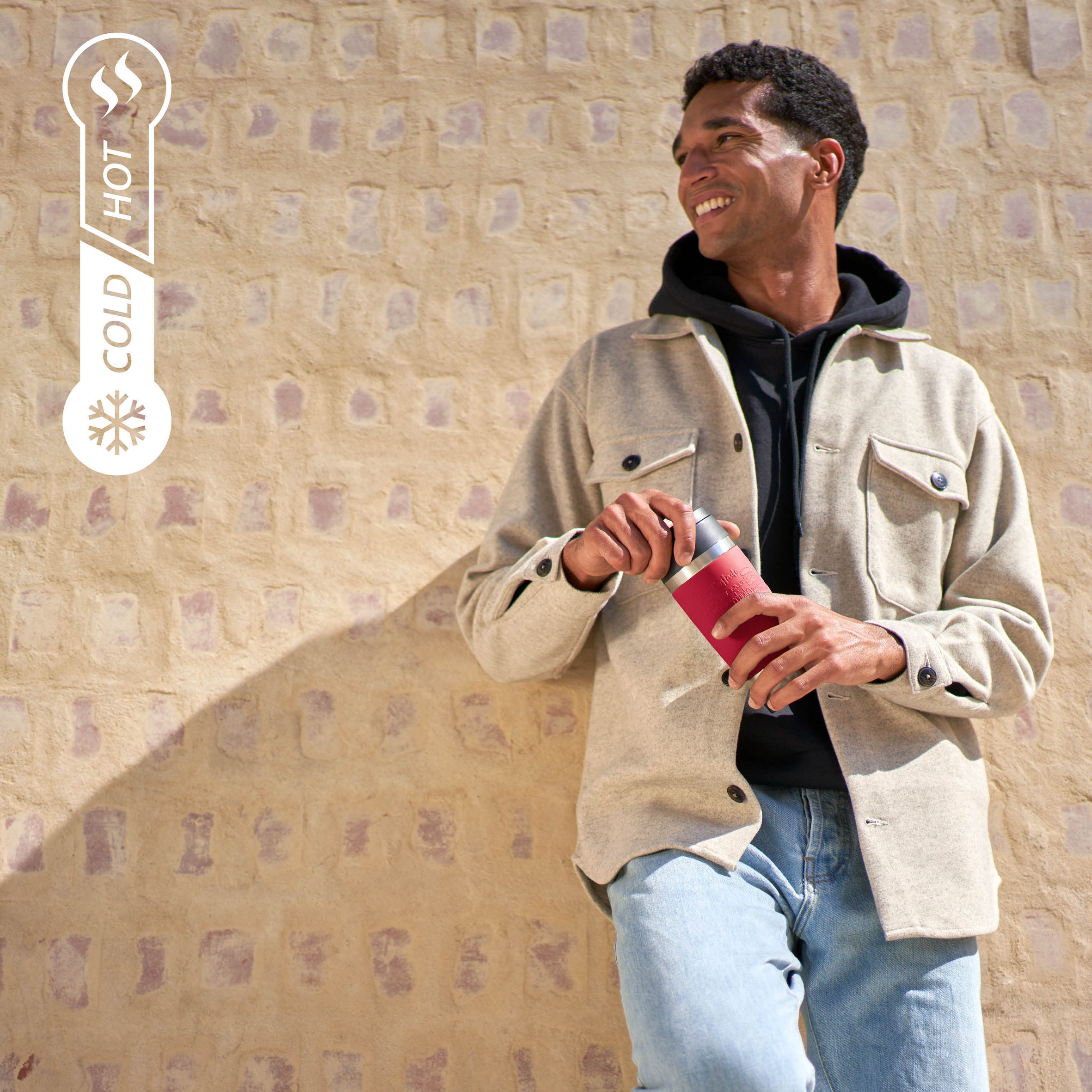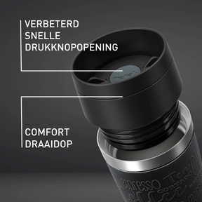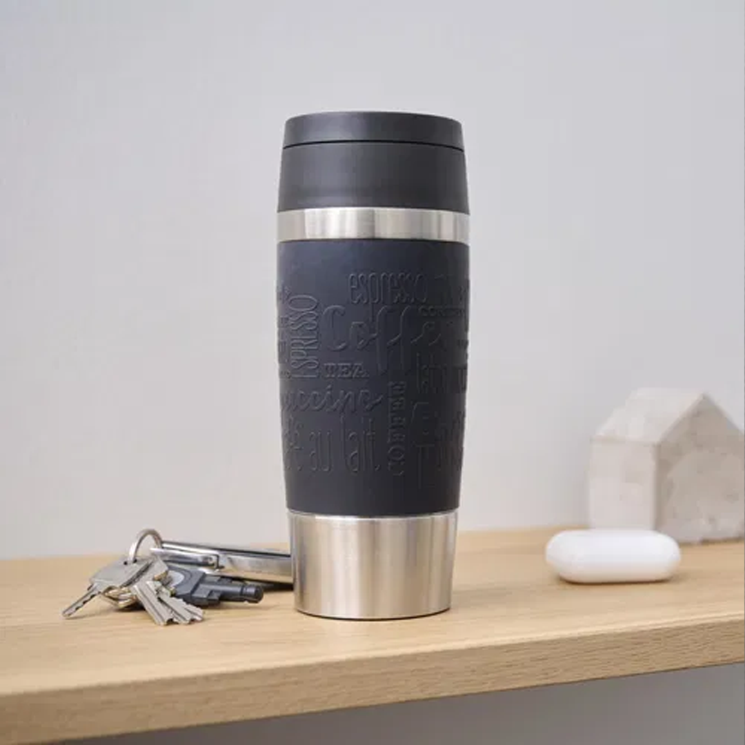 TEFAL Thermal Bottle Travel Mug Classic Black 0.36L, Comfort Screw Lid Drinkware, Quick Press, Soft-Touch Sleeve, Travel-Ready, Reusable, 100% Leak-Proof, Keeps Drinks Cold (8hrs) and Hot (4hrs), 360° Drinking, N2020210 QUICK PRESS LID: Easy to open thanks to the Quick Press Lid with pressure valve—for a quick and satisfying sip right when you need it EFFORTLESS OPENING AND CLOSING: Equipped with a Comfort Screw Lid that makes filling effortless, discover the travel mug for everyday use—to enjoy all your favorite drinks wherever life takes you MODERN SLEEVE DESIGN: The soft-touch sleeve offers the grip for no slipping, with a trendy design in a wide choice of colors in two different sizes to suit any style REUSABLE MUG: Made with long-lasting, durable stainless steel, our travel mug is built to last – for easy drinking that helps to reduce waste 100% LEAK-PROOF: No leakage, for total peace of mind on the go — designed to easily fit into bags and car cup holders. Easy drinking within reach Featuring an improved quick push button opening and comfortable twist cap for effortless opening and closing of the cup.