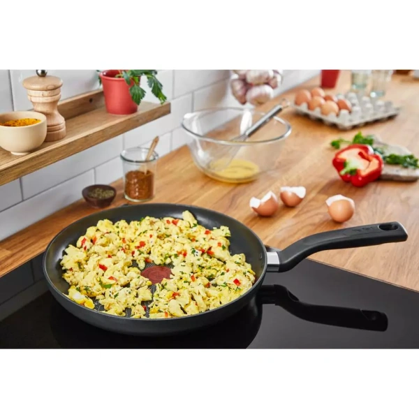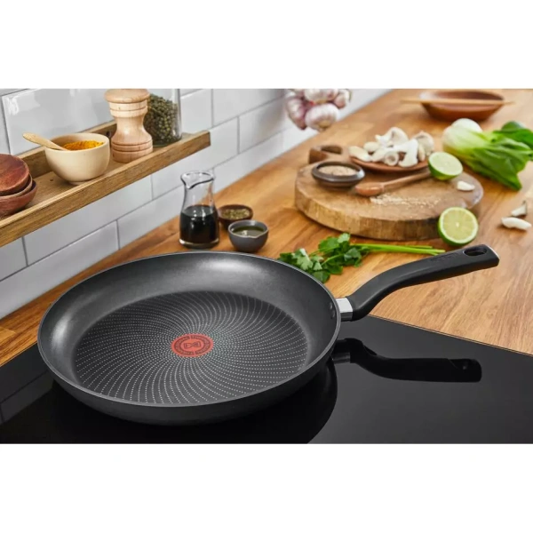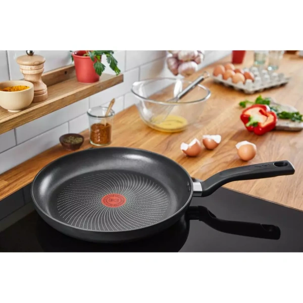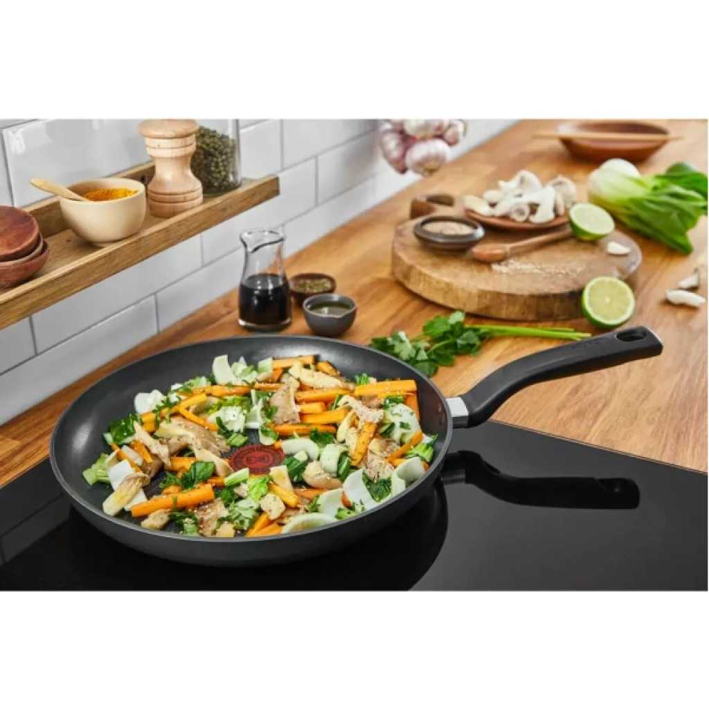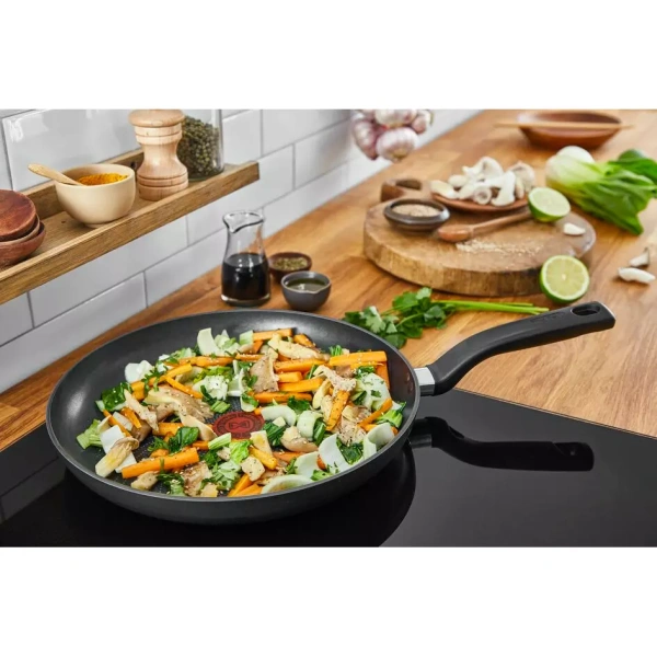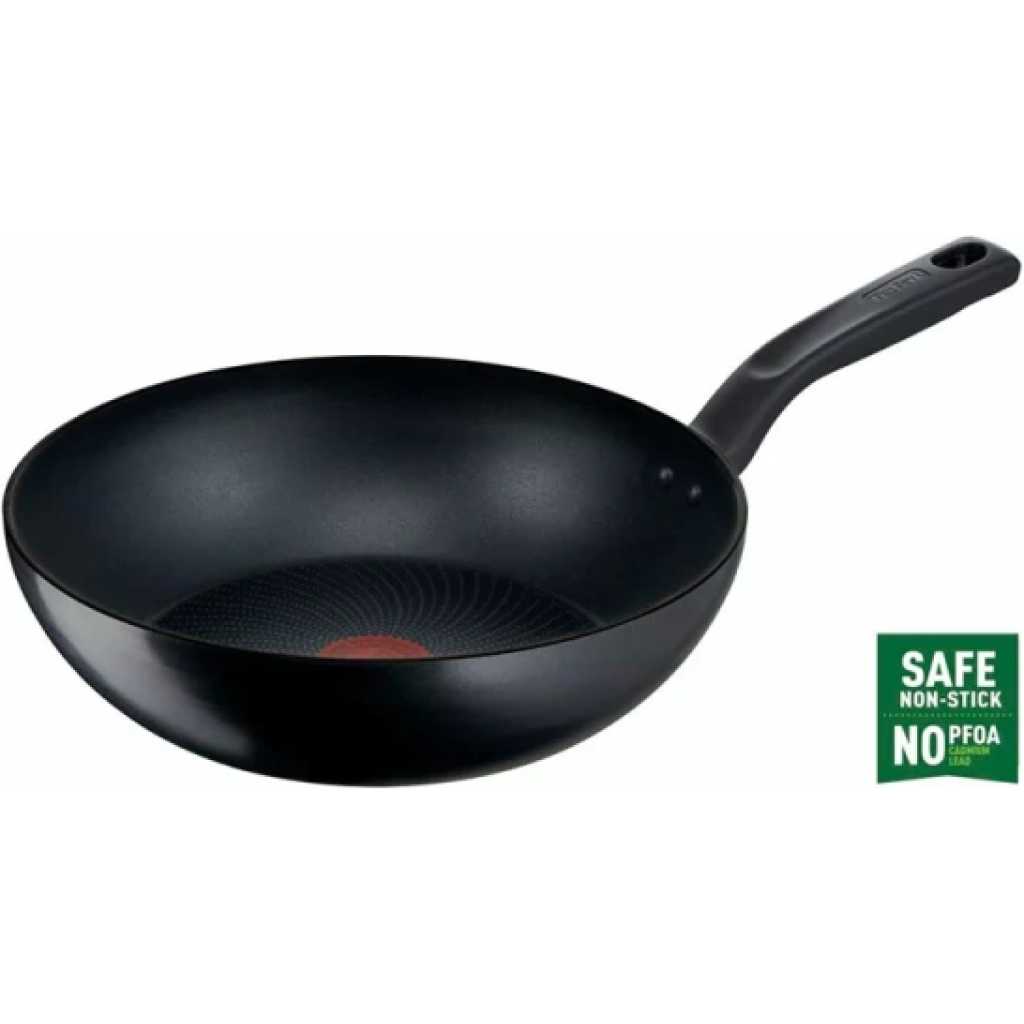 TEFAL Total Induction Wokpan, 28cm Non Stick Cookware Frying Pan, Thermo-Signal, Titanium Partials 100% Safe, Black, Aluminium-G1521944 DURABLE NON-STICK COATING: Tefal’s high-quality Titanium-infused coating delivers outstanding non-stick performance SAFE NON-STICK COATING: Safe non-stick, no PFOA, no Lead, no Cadmium. Stricter controls than those required by current food contact regulations. No PFOA in compliance with applicable regulations. No Lead, No Cadmium (no Pb, no Cd) means no intentional addition of Pb and Cd in the coatings and not detected by tests conducted by external laboratories. HEAT INDICATOR: The innovative Thermo-Signal zone changes color when it’s time to start cooking, for perfect searing every time ERGONOMIC HANDLE: Discover a more comfortable cooking experience every day DIFFUSION BASE: Evenly distributed heat throughout the surface of the pan, for exceptionally homogenous cooking results ESSENTIAL FORMAT: A frypan designed for easy-to-prepare recipes that are sure to please, such as omelets, burger patties and grilled chicken NON-STICK COATING INSIDE AND OUT: Ensuring effortless cleaning every day STOVETOP COMPATIBILITY: Compatible with all stovetops—gas, electric and ceramic—excluding induction