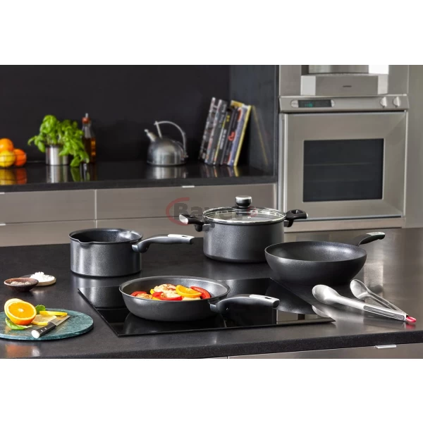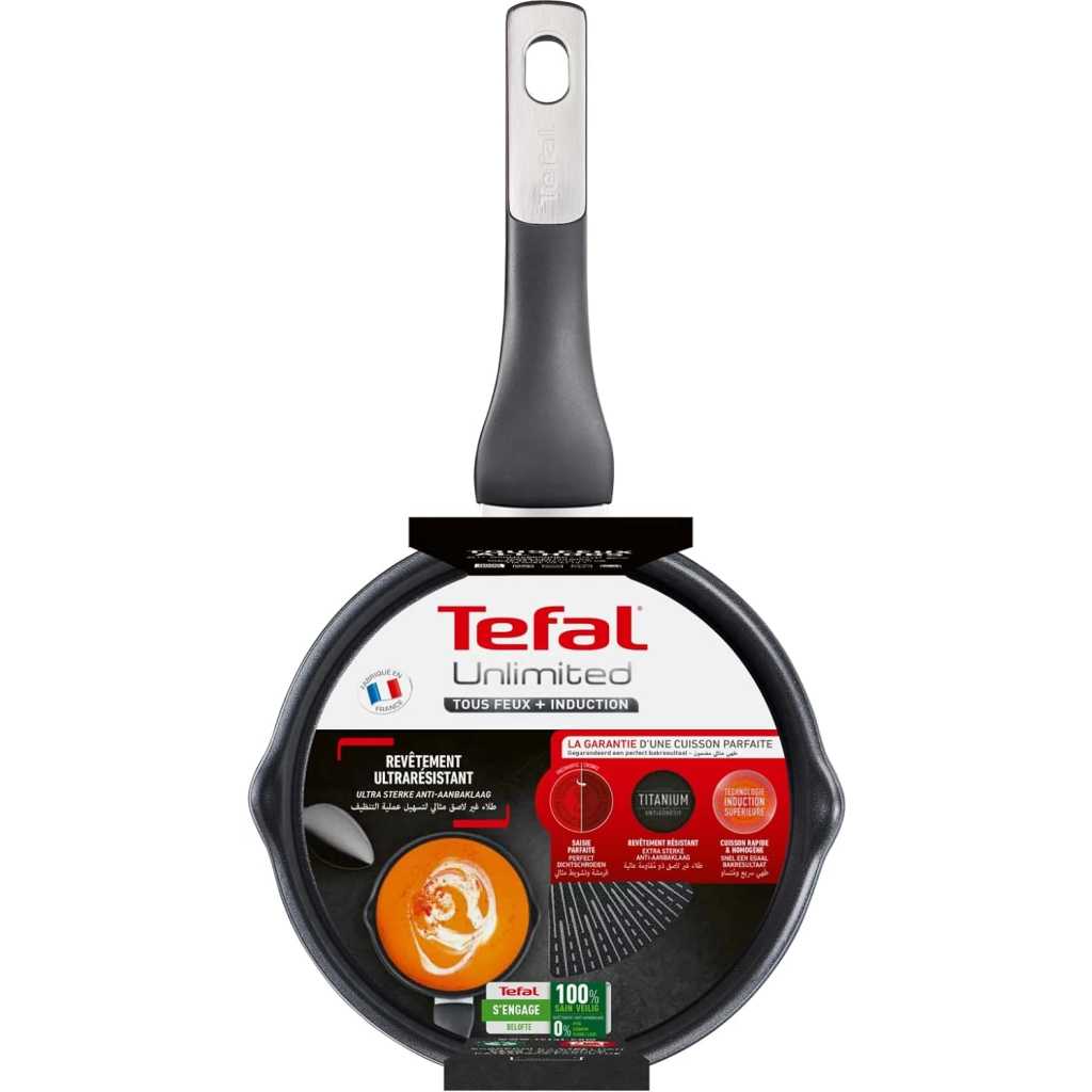 Tefal Unlimited 20cm Non-Stick Aluminium Sauce Pan, Induction, G2553002 – Black. Compatible with all heat sources including induction. NON-STICK COATING: Titanium enables cleaning and easy cooking performance 100% SAFE NON-STICK COATING : 0% PFOA, 0% lead, 0% cadmium* HEAT INDICATOR: Thermo-Signal marking turns full red when the pan reaches the ideal temperature, for perfect searing results made easy SUPERIOR INDUCTION TECHNOLOGY: Fast and even cooking IDEAL FOR DELICIOUS SAUCE-BASED RECIPES: thanks to its performant non-stick EASY POURING: Thanks to its two precise pouring spouts ECO-FRIENDLY: Recyclable products with safe non-stick coating (no PFOA, no lead, no cadmium)