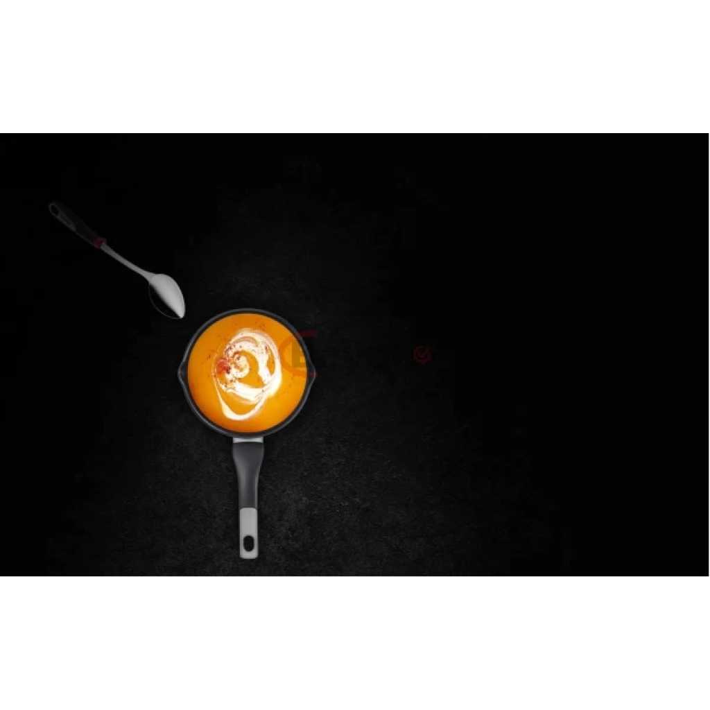 Key Features: Tefal Unlimited 20cm Non-Stick Aluminium Sauce Pan, Induction, G2553002 – Black. Compatible with all heat sources including induction. NON-STICK COATING: Titanium enables cleaning and easy cooking performance 100% SAFE NON-STICK COATING : 0% PFOA, 0% lead, 0% cadmium* HEAT INDICATOR: Thermo-Signal marking turns full red when the pan reaches the ideal temperature, for perfect searing results made easy SUPERIOR INDUCTION TECHNOLOGY: Fast and even cooking IDEAL FOR DELICIOUS SAUCE-BASED RECIPES: thanks to its performant non-stick EASY POURING: Thanks to its two precise pouring spouts ECO-FRIENDLY: Recyclable products with safe non-stick coating (no PFOA, no lead, no cadmium)