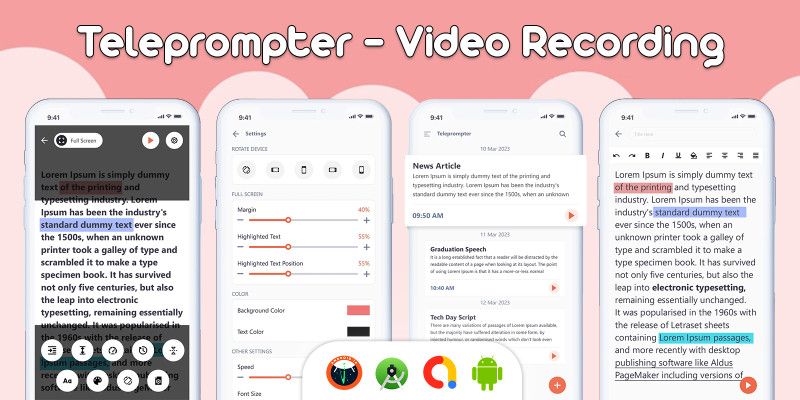 Teleprompter for Video - Android App. Teleprompter for Video, Elegant Teleprompter, Teleprompter: Floating Notes & Video Scripts