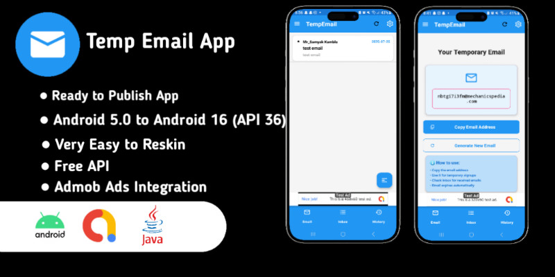 TempEmail - Temporary Email Android Source Code. TempEmail is a modern Android application that provides temporary, disposable email addresses to protect your privacy