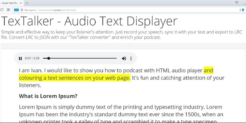 TexTalker - Adui Text Displayer Javascript. TexTalker - Audio Text Displayer - Read-along script