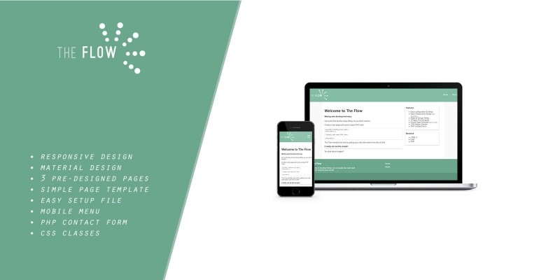 The Flow - Web Template - HTML5 - PHP - CSS. A simple, responsive theme with material design styles for use on your HTML/PHP site