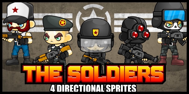 The Soldiers - Game Sprites. A collection of soldier sprites for creating a 2D top down shooter
