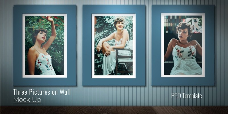 Three Pictures on Wall Mock-Up - 2 PSD Templates
