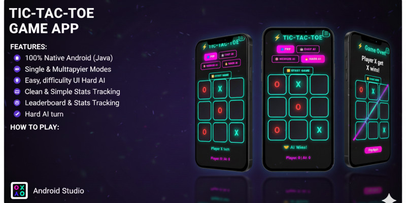 TIC-TAC-TOE Android Game. Ready-to-use Android game template. Open in Android Studio, customize, and publish your own version easily.