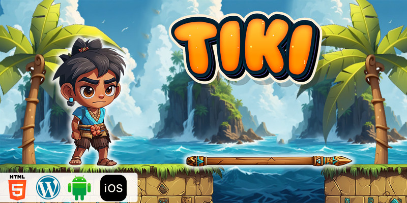 Tiki HTML5 Construct3 Game. Tiki loves to explore unknown places nearby him, and he went for a adventure towards wooden bridge.