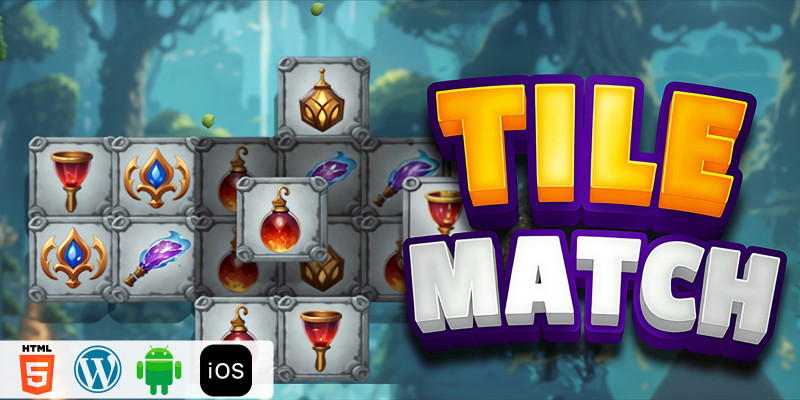 Tile Match HTML5 Construct3 Game. In this game you have to match all the magic spells to execute them and create a new magic spell.