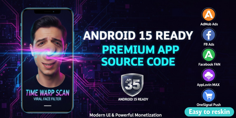 Time Warp Scan - Viral Face Filter App - Android . Premium Time Warp Scan App Source Code. Android 15 Ready, AdMob, FB & AppLovin Ads, Modern UI & OneSignal included.