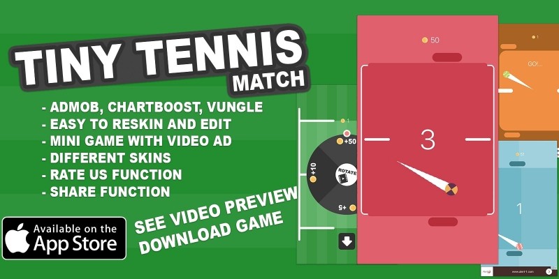 Tiny Tennis Match - iOS Game Source COde. Play in this small pocket tennis, open more skins and beat your results!