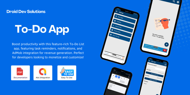 To-Do Android App with Ads Integration. This app allows users to add tasks via voice, set due dates, and categorize tasks easily. Perfect for busy individuals!