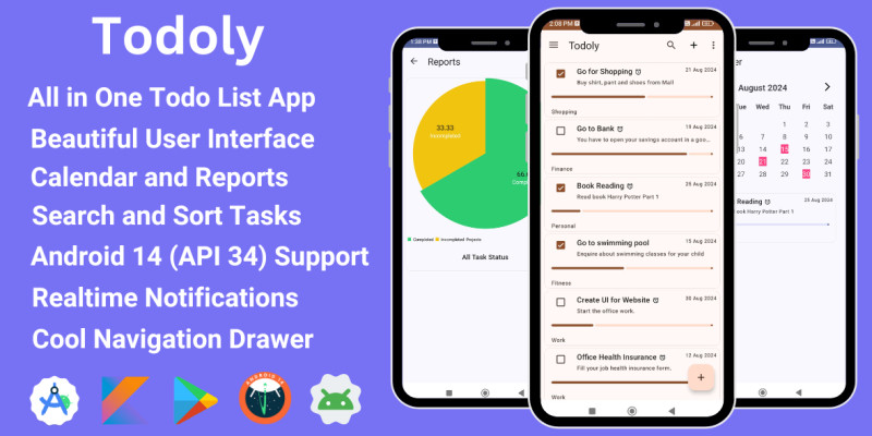 Todoly - All in One Task Manager Android App. Todoly App is an All in One Task Management Android App made in Android Studio using Kotlin and Xml.
