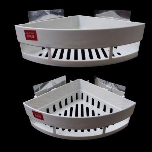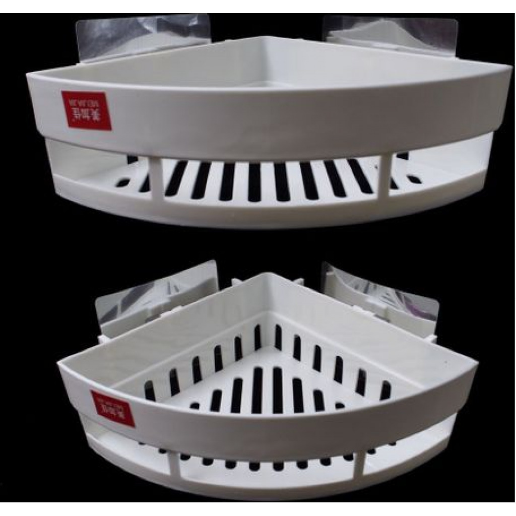 Toiletry & Kitchenette, Bathroom Organizer Shelf Rack, White The corner shelf is designed for the square corner. The porous body allows water to drain out Perfect for cosmetic, bath products and other small household items. Mount on a smooth and polished surface like Ceramic tile, glass and mirror New designed With two suction cups, stick tight and strong Perfect suction cup solution for kinds of smooth and non-smooth wall, such as gritty, stainless steel, tile, smooth glass, paint wood, emulsion varnish, archaized brick, ground glass etc. Key Features: Toiletry & Kitchenette, Bathroom Organizer Shelf Rack, White Made of durable BPA free plastic Works on most surfaces Creates an instant Shelf Zero Installation Add extra storage to any corner Holds upto 10lbs 2 Adjustable hooks Surfaces: Tile, Fiberglass, Glass, Mirror, Drywall.