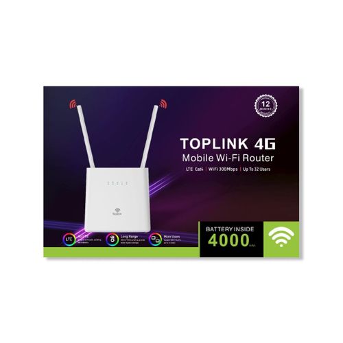 Introducing the TopLink HW303 4G Mobile Wi-Fi Router, a versatile and high-performance device designed to meet the demands of modern connectivity. Whether you’re at home or in the office, this router delivers a high-speed LTE Cat4 network and robust Wi-Fi capabilities, making it an ideal solution for users who require stable and efficient internet access. Key Features: 1. Speed and Stability: Experience lightning-fast internet connectivity with LTE Cat4 speeds, providing download speeds of up to 150Mbps. The router’s Wi-Fi capabilities are equally impressive, offering speeds of 300Mbps. This ensures a seamless online experience, whether you’re streaming, working, or gaming. 2. Multi-User Support: The HW303 is designed to accommodate the connectivity needs of a diverse range of users. With the ability to support up to 32 users simultaneously, it caters to both home and office environments where multiple devices require reliable and high-speed internet access. 3. Extended Battery Life: Equipped with a powerful 4000mAh standard Li-ion battery, this router ensures extended periods of connectivity. This feature is especially valuable in scenarios where continuous power supply may be a concern, making the HW303 an excellent choice for users on the go. 4. Dual Antenna Design: The router incorporates a dual antenna design, featuring dedicated antennas for both 4G and Wi-Fi signals. This design enhances signal reception and stability, ensuring a strong and consistent connection for all connected devices. Whether you’re in a densely populated area or a location with challenging signal conditions, the HW303 is optimized for reliable performance. 5. User-Friendly Interface: Navigating and managing the HW303 is a breeze, thanks to its user-friendly design. The LED display provides at-a-glance information on signal strength, connectivity status, and more. Accessible buttons for POWER, Reset, and WPS contribute to a hassle-free user experience. The Web UI further enhances device management, allowing users to monitor and control various aspects of the router’s performance effortlessly. In summary, the TopLink HW303 4G Mobile Wi-Fi Router brings together high-speed connectivity, multi-user support, extended battery life, dual antenna technology, and user-friendly design. Whether you’re at home, in the office, or on the move, this router is designed to provide a reliable and efficient internet connection to meet the diverse needs of today’s users. Stay connected seamlessly with the TopLink HW303.