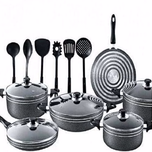 Precise die-cast aluminum ceramic cookware is made of special-formulated aluminum alloy with advanced die-cast technology under traditional cast-idea. The die-cast aluminum cookware is light and easy in operation to eliminate the demerits of iron cookware, which is heavy and liable to corrode and eliminate the weakness of drawn iron cookware. Owing to fast heat transmission, our cookware can fry, cook and roast foods with little oil or without oil, no oil-carbonizing or sticking, which complies people’s traditional idea to cook food with cast cookware and makes people more healthy. Both the external and internal layers of the cookware are sprayed with a Ceramic coat, which is sanitary and washable. The coat is an international certified famous product, which is safe, reliable and durable rending a long service life. The glass-lid is safe, transparent, heat-resistant, beautiful and able to be directly put into the stove. Key Features: Die-cast coating Heavy gauge aluminum is super conductive for even heat distribution Easy clean exterior Bakelite handles Transparent lids with steam outlet holes 4 pcs nonstick cooking pots 5 pcs transparent glass lid 2 pc Frying pan 6 Non-stick spoons