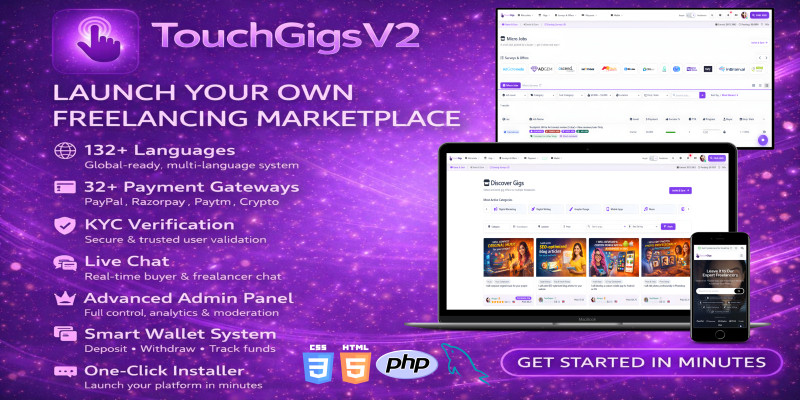 TouchGigs V2 – Micro Jobs And Gigs Marketplace. Touch Gigs V2: Advanced PHP micro-jobs & freelancing gig marketplace (Fiverr-style, SproutGigs-style).