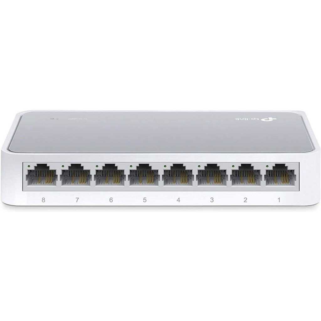 TL-SF1005D Fast Ethernet Switch provides 8 10 / 100Mbps autonegotiation RJ45 ports. All ports support Auto MDI / MDIX function, eliminating the need for crossover cables or Uplink ports. The switch is Plug-and-Play and each of the ports can be used as general port or Uplink ports and can be simply connected to a server, a hub or a switch. The TL-SF1005D 8-Port 10/100Mbps desktop switch provides an easy way to expand your wired network. All 5 ports support auto-MDI/MDIX, eliminating the need to worry about the type of cable to use. Featuring full duplex mode, the TL-SF1005D can process data at a rate of up to 200Mbps making it an ideal choice for expanding your high performance wired network. Moreover, with innovative energy-efficient technology, the TL-SF1005D can save up to 68% of power consumption, making it an eco-friendly solution for your home or office network. Easy to Use The auto features of this ethernet switch make installation plug and play and hassle-free. No configuring is required. Auto MDI/MDIX eliminates the need for crossover cables. Auto-negotiation on each port senses the link speed of a network device (10, 100 Mbps) and intelligently adjusts for compatibility and optimal performance. High Performance and Reliability The TL-SF1008D 8-Port Fast Ethernet Desktop Switch can process data at a rate of up to 100Mbps, making it an ideal choice for expanding your high performance wired network. Plug and Play The auto features of this Fast Ethernet switch make installation plug and play and hassle-free. No configuring is required. Auto MDI/MDIX eliminate the need for crossover cables or uplink ports. Auto-negotiation on each port senses the link speed of a network Key Features: PLUG-AND-PLAY – Easy setup with no configuration or no software needed ETHERNET SPLITTER – Connectivity to your router or modem router for additional wired connections (laptop, gaming console, printer, etc) 8 Port FAST ETHERNET – 8 10/100 Mbps Fast Ethernet auto-negotiation RJ45 ports greatly expand network capacity COST EFFECTIVE – Fanless Quiet Design, Desktop design RELIABLE – IEEE 802.3x flow control provides reliable data transfer UP to 60% Power Saving – Automatically adjusts power consumption according to the link status and cable length AUTO-NEGOTIATION – Supports Auto-MDI/MDIX, eliminating the need for crossover cables Unlimited 24/7 technical support for FREE