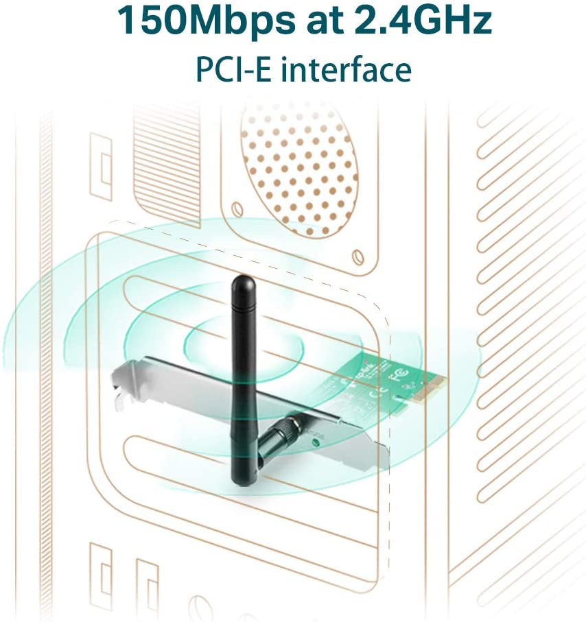 TP-LINK TL-WN781ND is designed to provide a complete end-to-end wireless performance from the server or server backbone to the switch infrastructure and down through to the desktop with the PCI Express connector. TL-WN781ND Wireless N PCI Express(x1) Adapter provides a wider compatibility, fitting with any standard PCI Express slot, x1, x2, x8, or x16. Compared with standard PCI network cards, it offers increased bandwidth, reliability and more functionality, allowing you to enjoy a fast and advanced connection, such as downloading, making internet call and video streaming. Wireless N -Speed & Range. Complying with the IEEE 802.11n standard, TL-WN781ND can easily establish a wireless network and get up to 9X the speed and 4X the range of conventional 11g products. Compared with legacy 54M products, TL-WN781ND delivers performance enhancements, allowing you to have a more joyful surfing experience, including sharing files, watching streaming media. WPA/WPA2 Encryptions – Advanced Security. As for the security of WI-FI connection, WEP encryption has been no longer the strongest and safest guards for outside intrusions. TL-WN781ND provides WPA/WPA2 encryptions that are created by the WI-FI Alliance industry group, preventing the wireless network from outside threats. Quick Setup Security. Compatible with WI-FI Protected Setup (WPS), TL-WN781ND features Quick Security Setup (QSS) function, which is ideal for creating a WPA encrypted connection to prevent outside intrusion, and meanwhile maximize the management resources. Detachable Antenna. TL-WN781ND offers external antenna that can be rotated and adjusted in different directions to fit various operation environments, and can bring better performance than the internal antenna. For even more demanding applications, the antenna can be replaced with diverse antennas to show even greater flexibility and wider wireless coverage. Frequency Range: 2.400-2.4835GHz; Interface Available: PCI Express; System Requirement: Windows 8.1/8(32/64bits) Windows 7(32/64bits) Windows Vista(32/64bits) Windows XP(32/64bits); Wireless Standards: IEEE 802.11n IEEE 802.11g IEEE 802.11b
