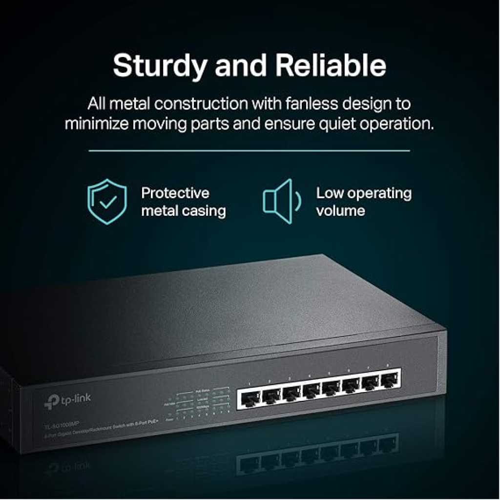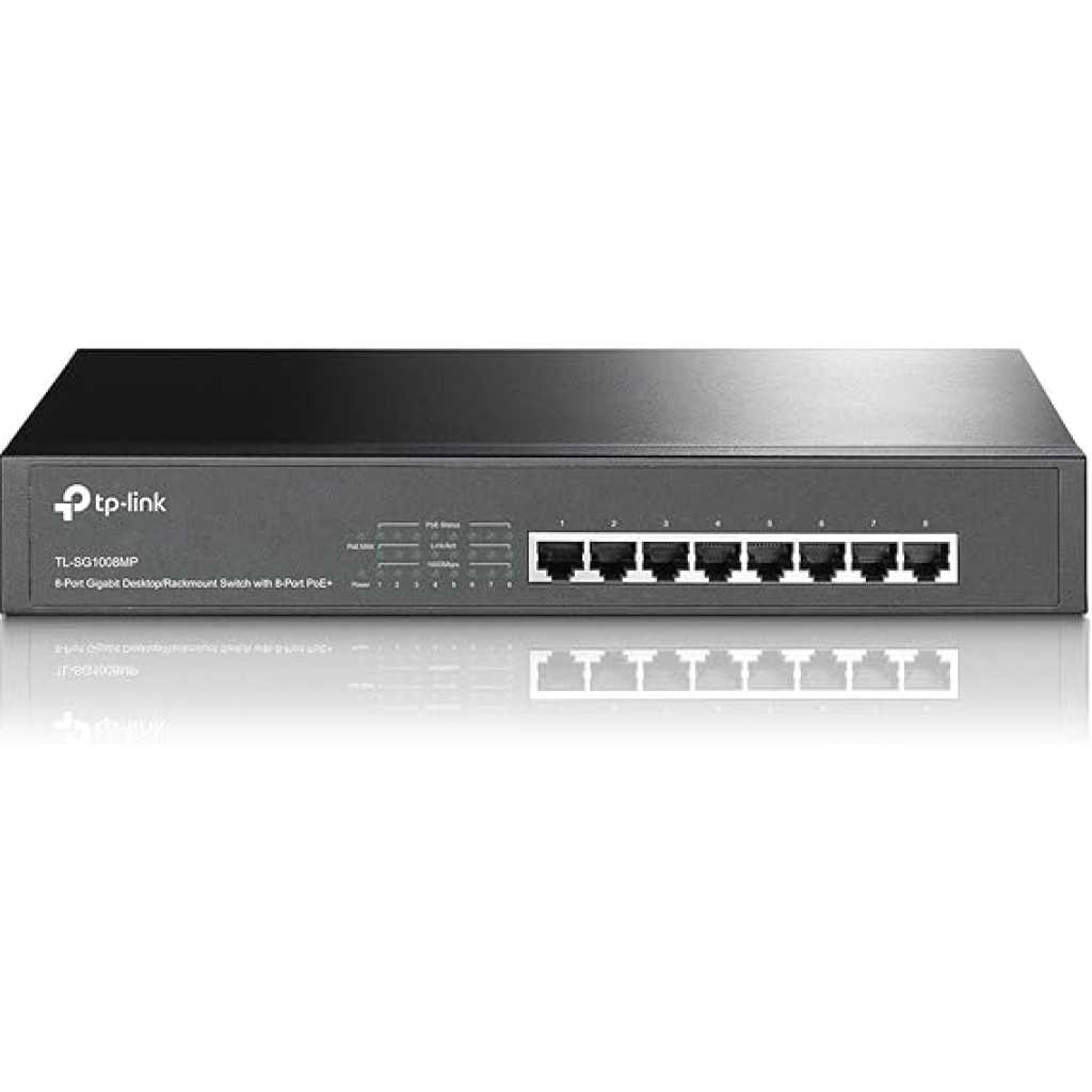 Key Features: TP-Link TL-SG1008MP 8 Port Gigabit PoE Switch, 8 PoE+ Ports @126W, Plug & Play, Limited Lifetime Protection, Desktop/ Rackmount, Prioritized Power Supply, Sturdy Metal, Shielded Ports Full Gigabit 8-Port PoE Configuration – 8x PoEplus (802.3at/af) 10/100/1000 Mbps RJ45 ports providing up to 30W per port and total PoE power budget of153W. – Easy setup with no software installation or configuration needed. with Port Priority – When connected devices’ total power consumption is greater than or equal to 153W, lower priority ports are disabled to prevent overloading. – Durable metal casing and desktop/rackmount design are well-suited for different environments. – IEEE 802.3X flow control provides reliable data transfer. – Backed by our industry-leading 3-year warranty and free US based technical support from 6am to 6pm PST Monday to Fridays, you can work with confidence.