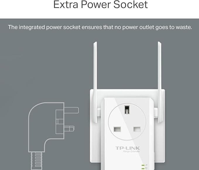 Key Features: TP-Link TL-WA860RE WiFi Extender Booster with Passthrough Socket, Ethernet Port N300Mbps, Internet Booster, WiFi Repeater,WiFi Extender,App Control, WiFi Booster Range Extender, Plug and Play,UK Plug Range Extender mode boosts wireless signal to previously unreachable or hard-to-wire areas flawlessly Miniature size and wall-mounted design make it easy to deploy and move flexibly Extra power socket making sure that no power outlet is going to waste 2 fixed external antennas provide excellent Wi-Fi coverage and reliability Easily expand wireless coverage at a push of Range Extender button
