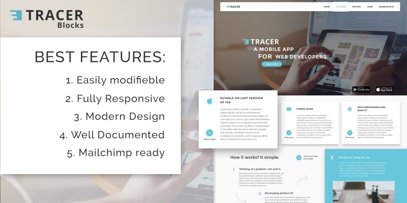 Tracer Blocks - App Landing Page HTML Template. Tracer Template is a clean, modern & creative Moble App Landing page.