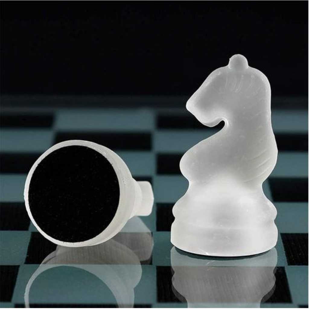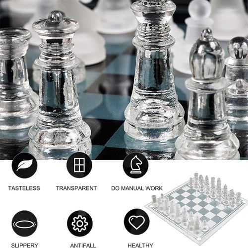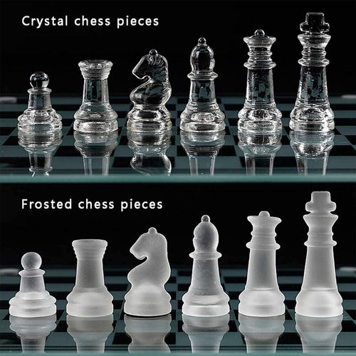 Key Features: SET INCLUDES One high-quality glass chess board with 16 frosted pieces and 16 clear pieces. Featuring the classic Knight, Rook, Bishop, Queen, King, and Pawns Crystal chess Board Set that looks super elegant and beautiful on your living room table. The transparent design matches perfectly with your home decor KID FRIENDLY STRATEGY GAME That develops critical thinking skills as well as teaches good sportsmanship A GAME OF WITS that you can play with your friends and family! Challenge mom and dad at your next family game night HIGH QUALITY novelty chess set that is simply a step above the rest. Each piece is made with premium glass and felt pads in order to keep your furniture scratch-free