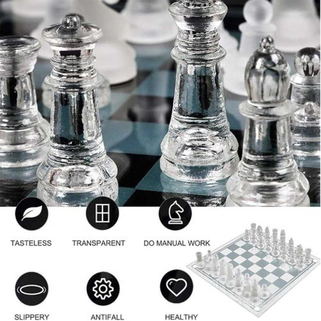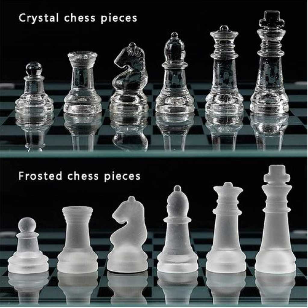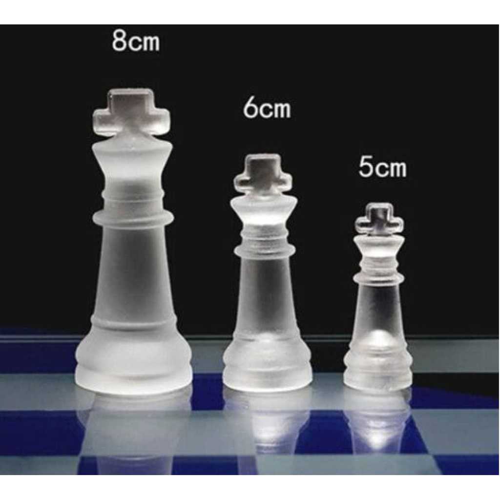 Traditional Glass Frosted Chess Boards Set With Transparent Glass Board and Frosted & Clear Crystal Pieces For Party Fun Game Gift( Puzzle Games) Family Game Night, Kids, Boy or Girl- Multicolor