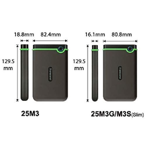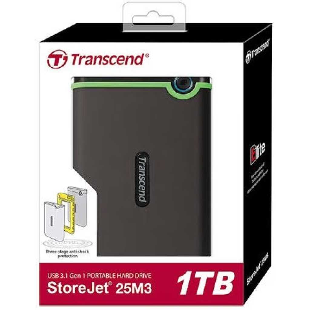 Key Features: Military-grade shock resistance, SuperSpeed USB 3.0 compliant and backwards compatible with USB 2.0 Advanced 3-stage shock protection system, Durable anti-shock rubber outer case Advanced internal hard drive suspension system, Quick Reconnect Button – re-enable safely removed USB hard drive without unplug and reinsert One Touch Auto-Backup button, 256-bit AES file & folder encryption, Exclusive Transcend Elite data management software Brand: Transcend Model: 25H3P Color: Black Storage Capacity: 1 TB USB 3.1 Interface, Bus-Powered 5400 RPM One-Touch Backup Button Advanced Internal Suspension System Transcend Backup & Security Software Power-Saving Sleep Mode Preformatted FAT32 for Windows & apple computers