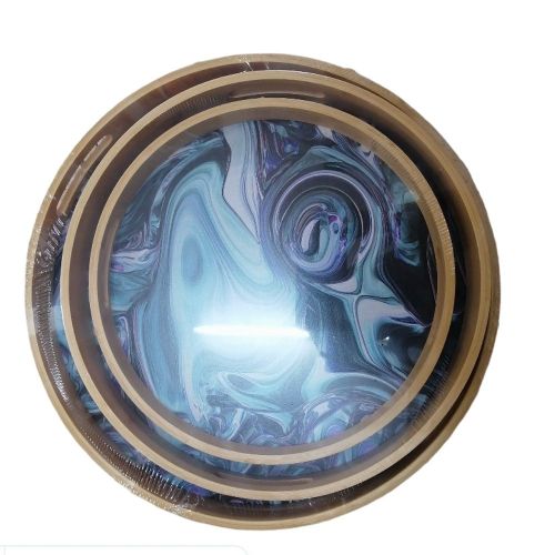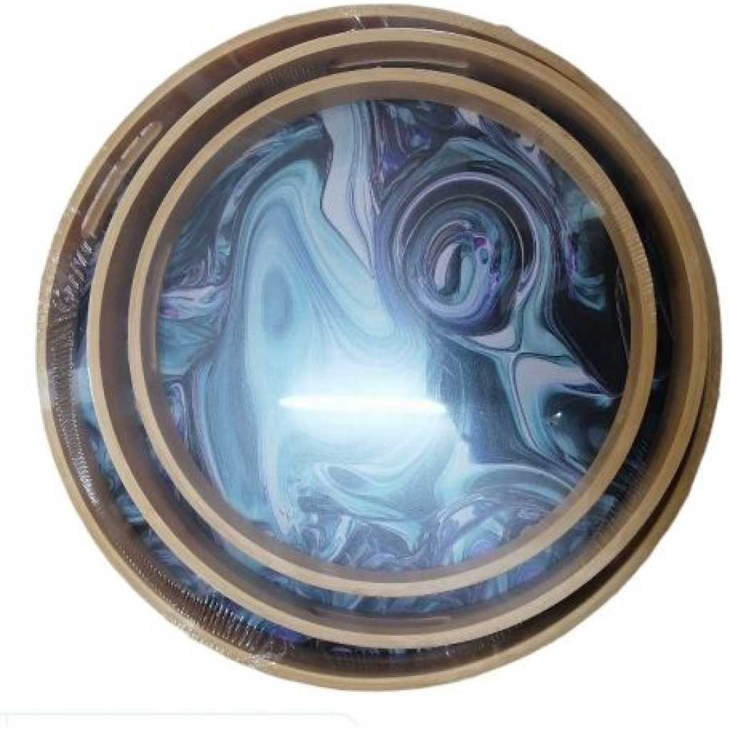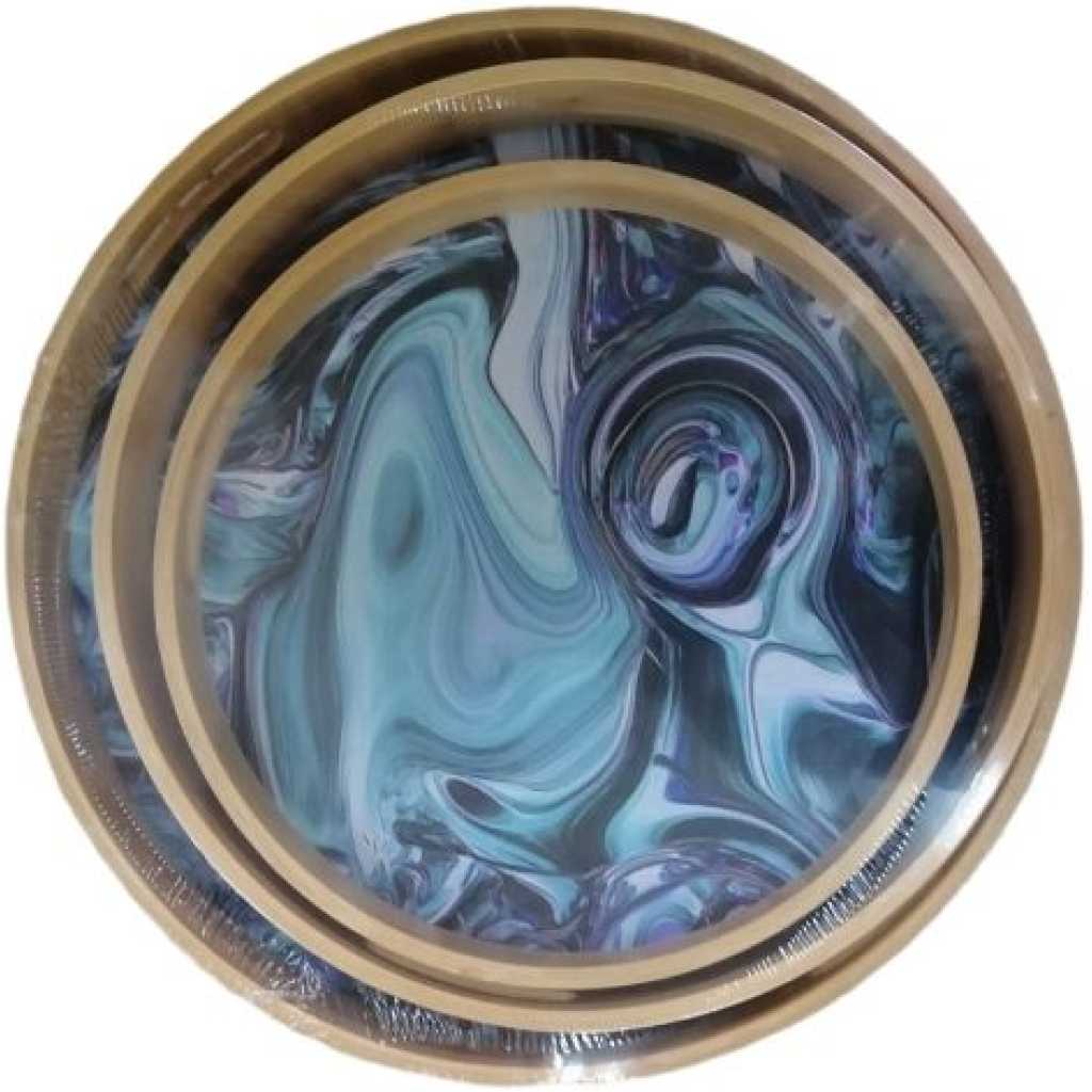 TRAY 3 Piece Round Heavy Marble Bamboo Wooden ServingTrays- Brown. Made from strong bamboo with integrated cut-out handles. Heat resistant and ideal for carrying hot and cold food and drinks. Trays nest together neatly for compact storage when not in use. Thanks to a convenient wipe-clean surface, it’s easy to keep the trays in tip-top condition Dimensions: Approx Large Tray – 18.5 X 13 inches; Medium Tray – 17 X 12 inches; Small Tray – 15 X 11 inches. Key Features: TRAY 3 Piece Round Heavy Marble Bamboo Wooden ServingTrays- Brown. 3 Serving trays Features raised edges and cut-out carrying handles Made from naturally durable and heat-resistant bamboo Lightweight, portable, and won’t warp or be easily damaged by hot plates or mugs. Grey in Color Eco-friendly