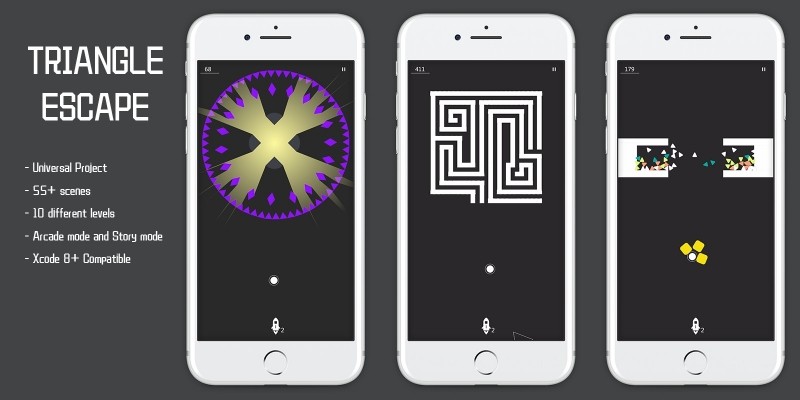 Triangle Escape Buildbox Template. The ball accidentally broke into the Triangle Zone, you will guide it to escape.