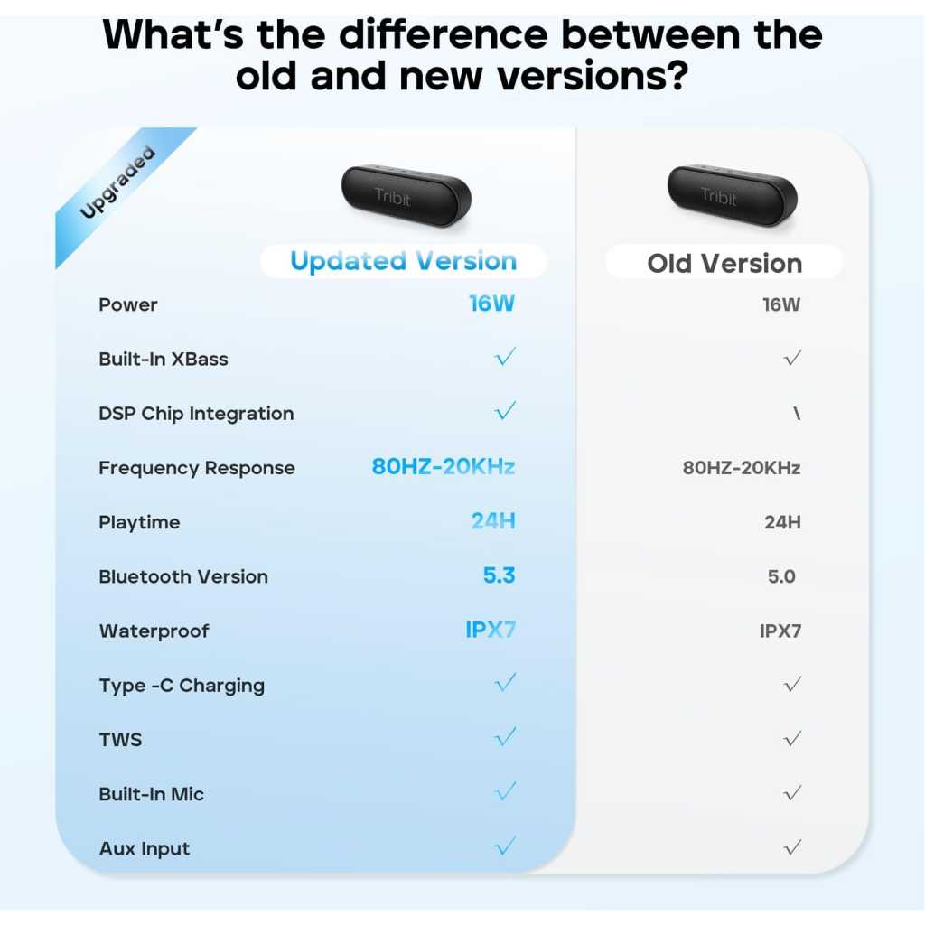 Connectivity Technology: Wireless Input Voltage : 5 Volts Included Components : speakers Special Feature: IPX7 Waterproof, Built-in XBass Technology, 24 Hours Playtime; 16Watt Wireless Stereo Pairing, Built-in Mic, KILLER AUDIO: With crystal highs, crisp mids and rich bass, XSound Go creates an immersive listening experience unlike any other. State of the art bass radiators and dual 8W power drivers deliver shocking sound without distortion even at maximum volume. SLEEK & SOPHISTICATED: Tribit XSound Go is as stylish as they come. Curved edges and a matte finish offer a modern touch, the compact design maximizes portability. Toss it in a backpack, stick in in your purse, or carry it around with the attached strap. WIRELESS CONNECTION: Don’t let cords tie you down. Premium bluetooth 5.0 technology effortlessly connects to all of your bluetooth-enabled devices up to 100ft range. Press and hold the multifunction button to access the voice input for Siri and Google Now.